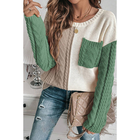 Women's Round Neck Wool Long Sleeve Fashion All-match Contrast Color Sweater