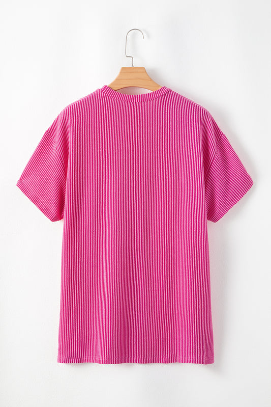Pink Corded Knit Pocketed Loose Fit T Shirt