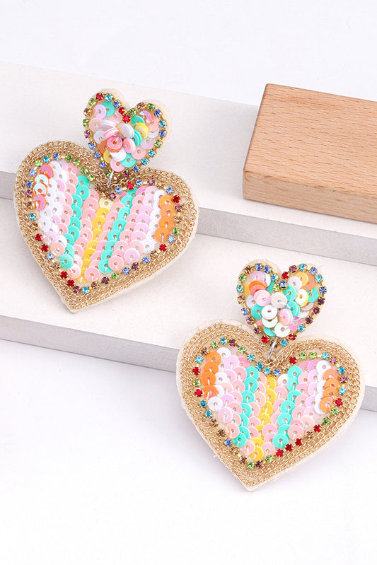 Pink Colorful Sequined Hearts Valentines Fashion Earrings