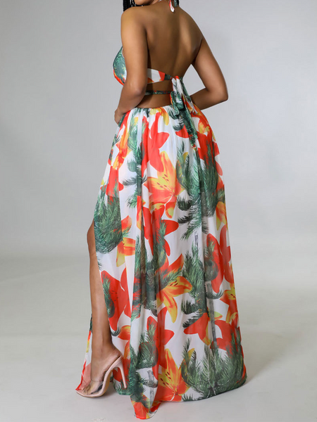 Printed Backless Side Slit Halter Dress H6VE68KF2K