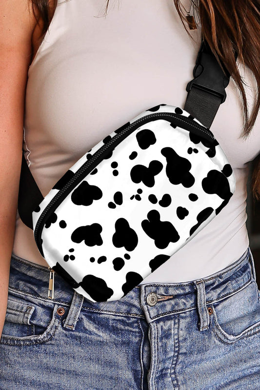 White Cow Pattern Print Buckle Wide Belt Inclined Shoulder Bag