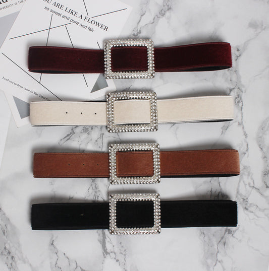 Women's Decorative Fur Wide Belt With Diamond
