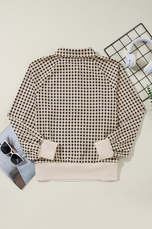 Black Plus Size Western Aztec Pattern Half Button Collared Plush Sweatshirt