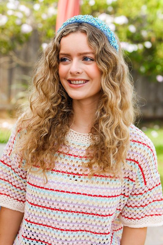 Blue Satin Daisy Rhinestone Headband