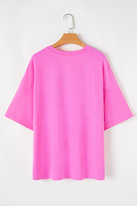 Bright Pink Contrast Printed Cap Sleeves Crewneck Sweater