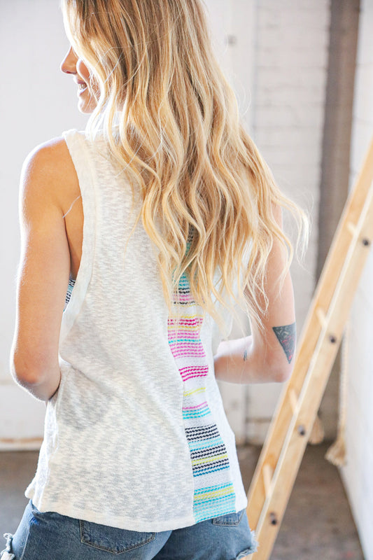 Cream Slub Vintage Color Block Two Fer Tank Top