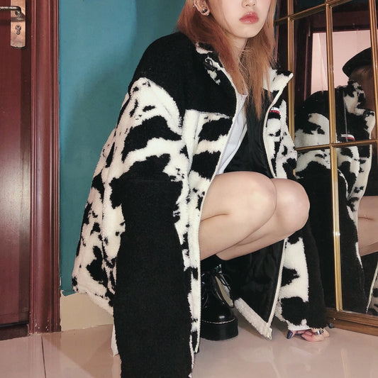 Cow Pattern Rabbit Fur Temperament Commuter Autumn And Winter Loose Women's Clothing