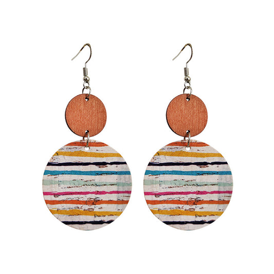 Hand-painted Colorful Art Pattern Striped Polka Dot Cork Earrings