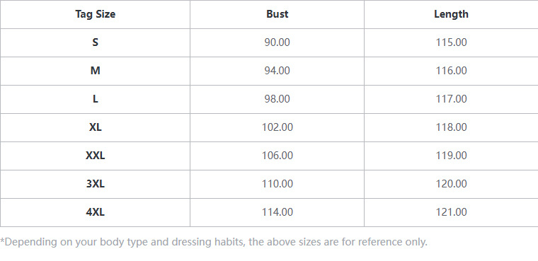 Sizes: S, M, L, XL, XXL, XXXL, 4XL