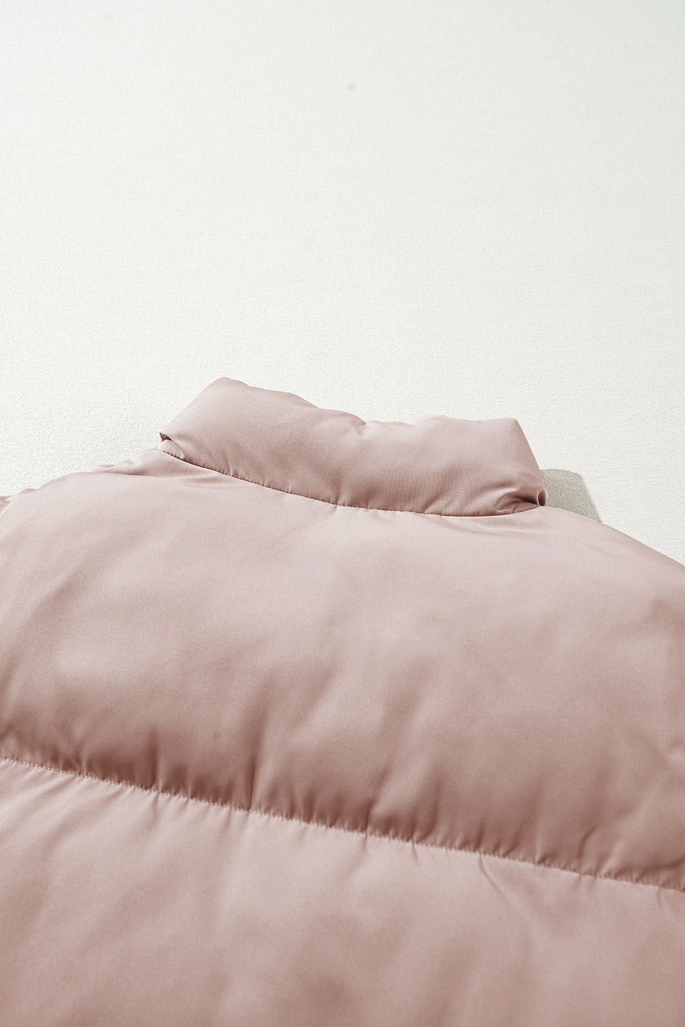 Apricot Pink Full Zipper Quilted Puffer Jacket