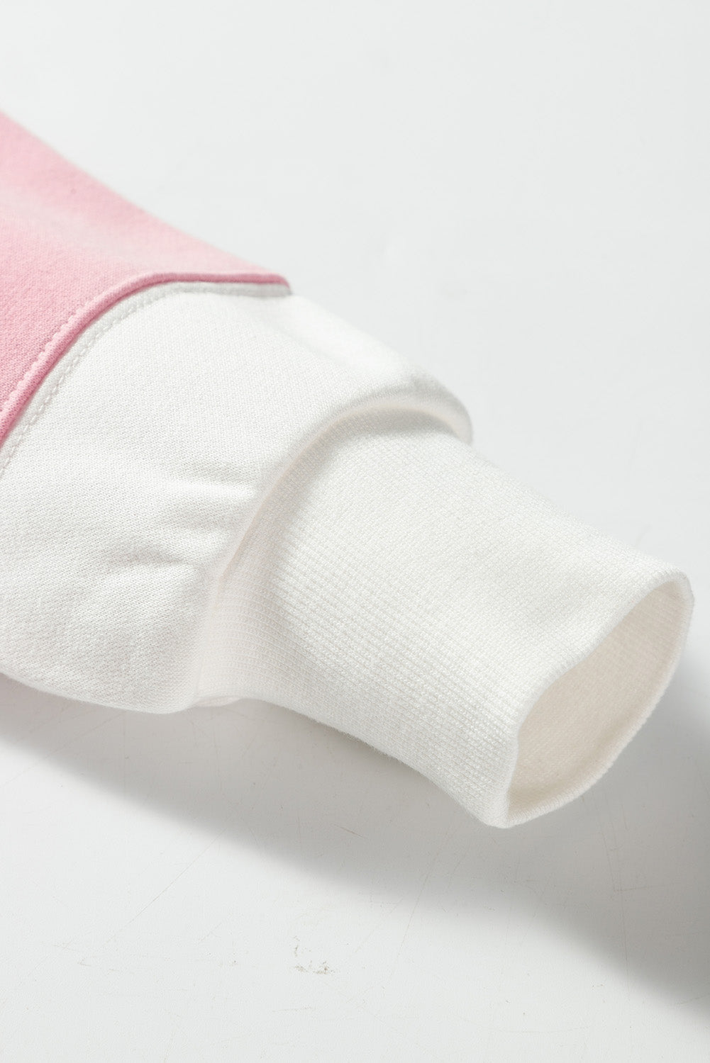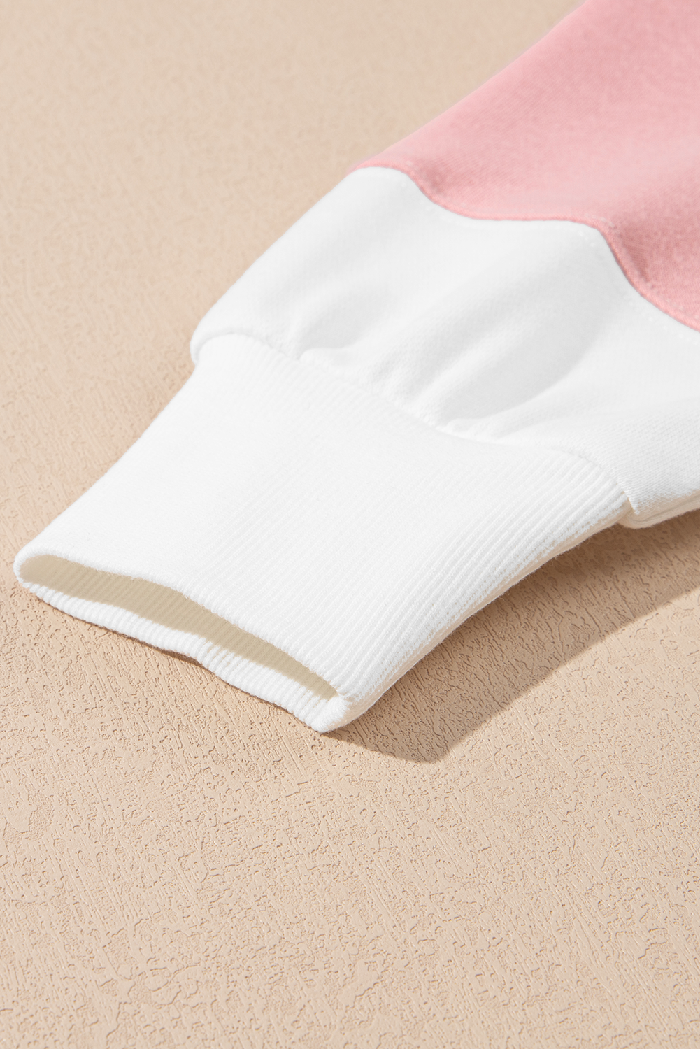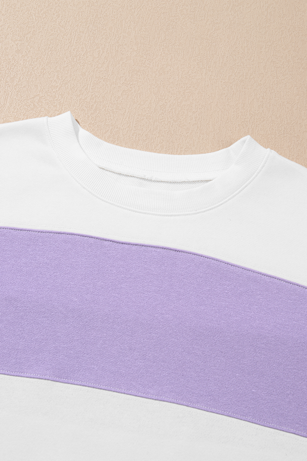 Beige Colorblock Patchwork Drop Shoulder Crewneck Sweatshirt