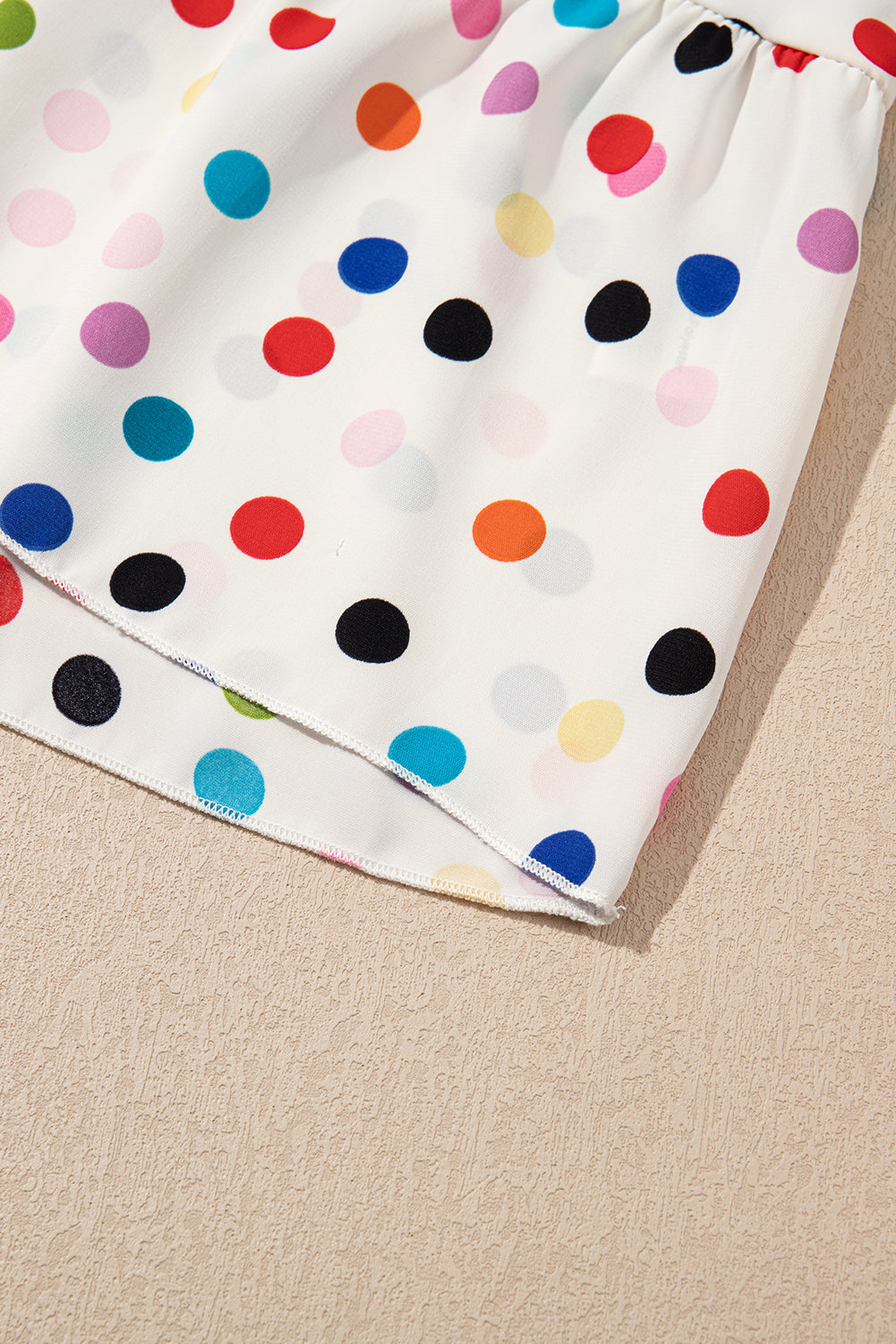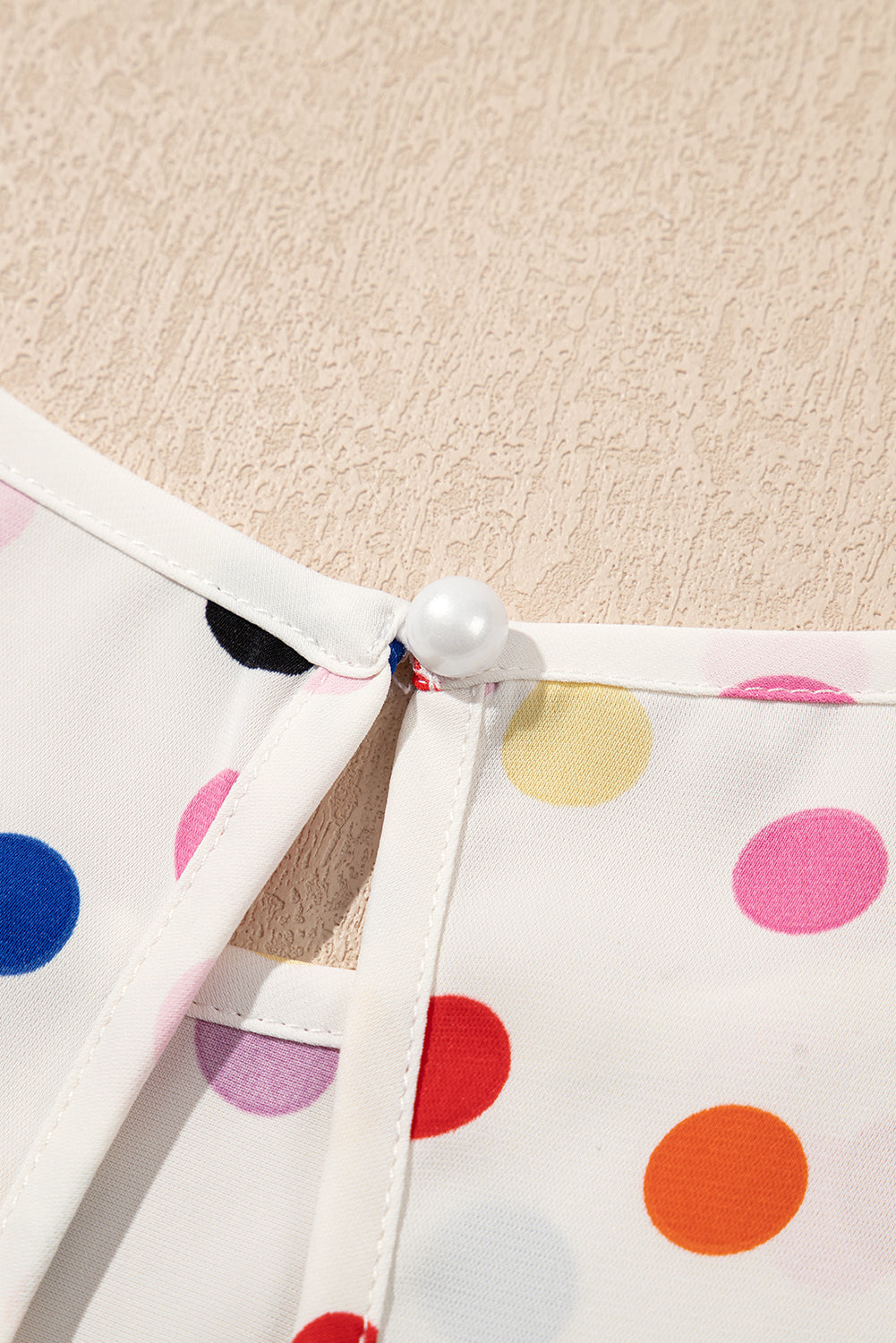 Beige Colorful Polka Dot Print Short Sleeve Ruffled Plus Size Babydoll Blouse