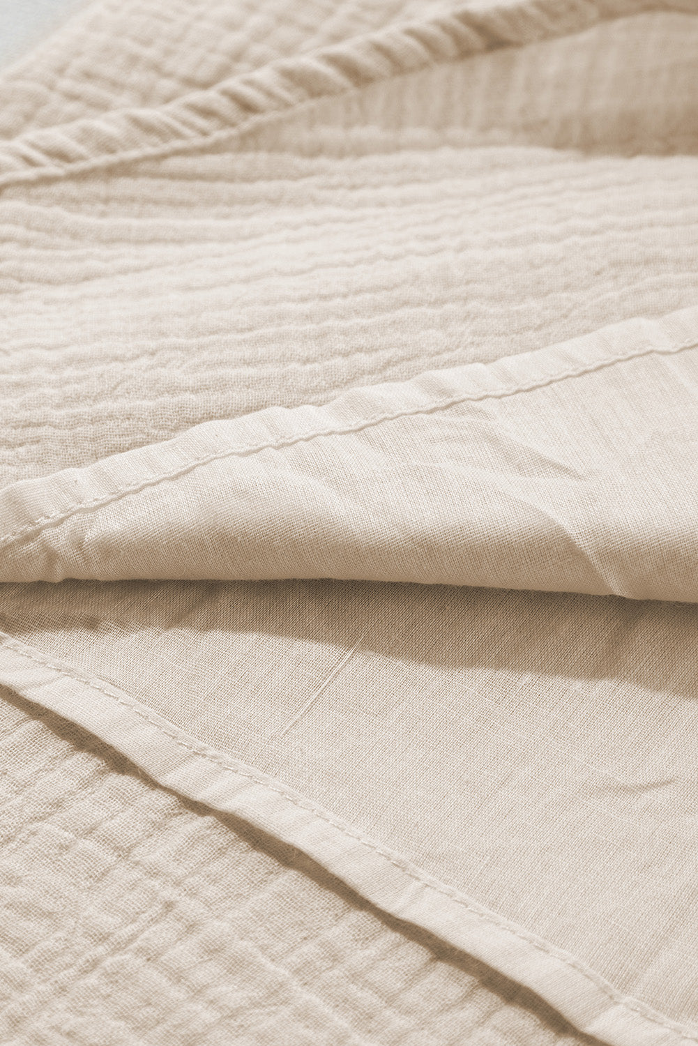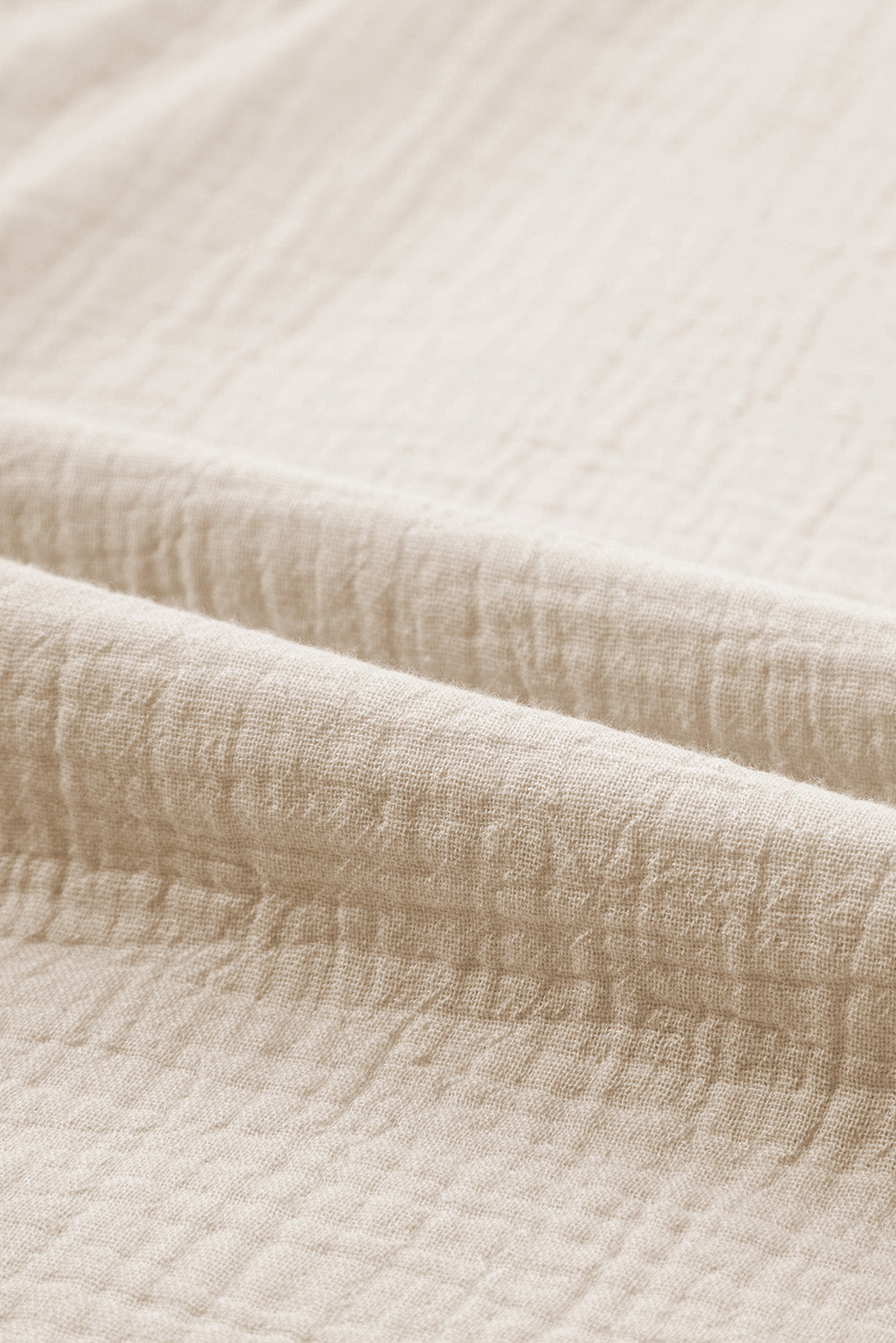 Beige Crinkle Lace Trim Puff Sleeve Shift Mini Dress