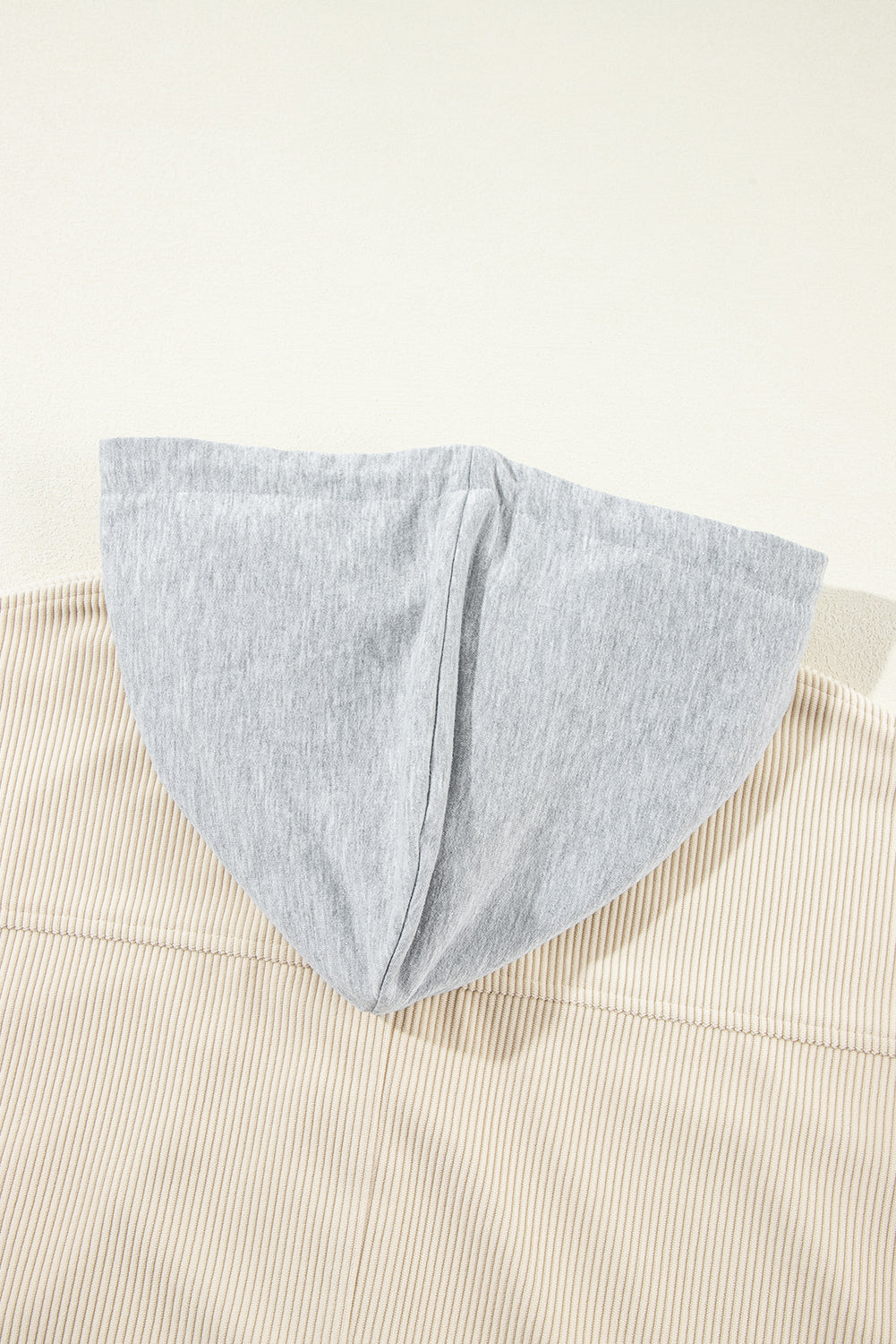 Beige Oversized Corduroy Contrast Hooded Shacket