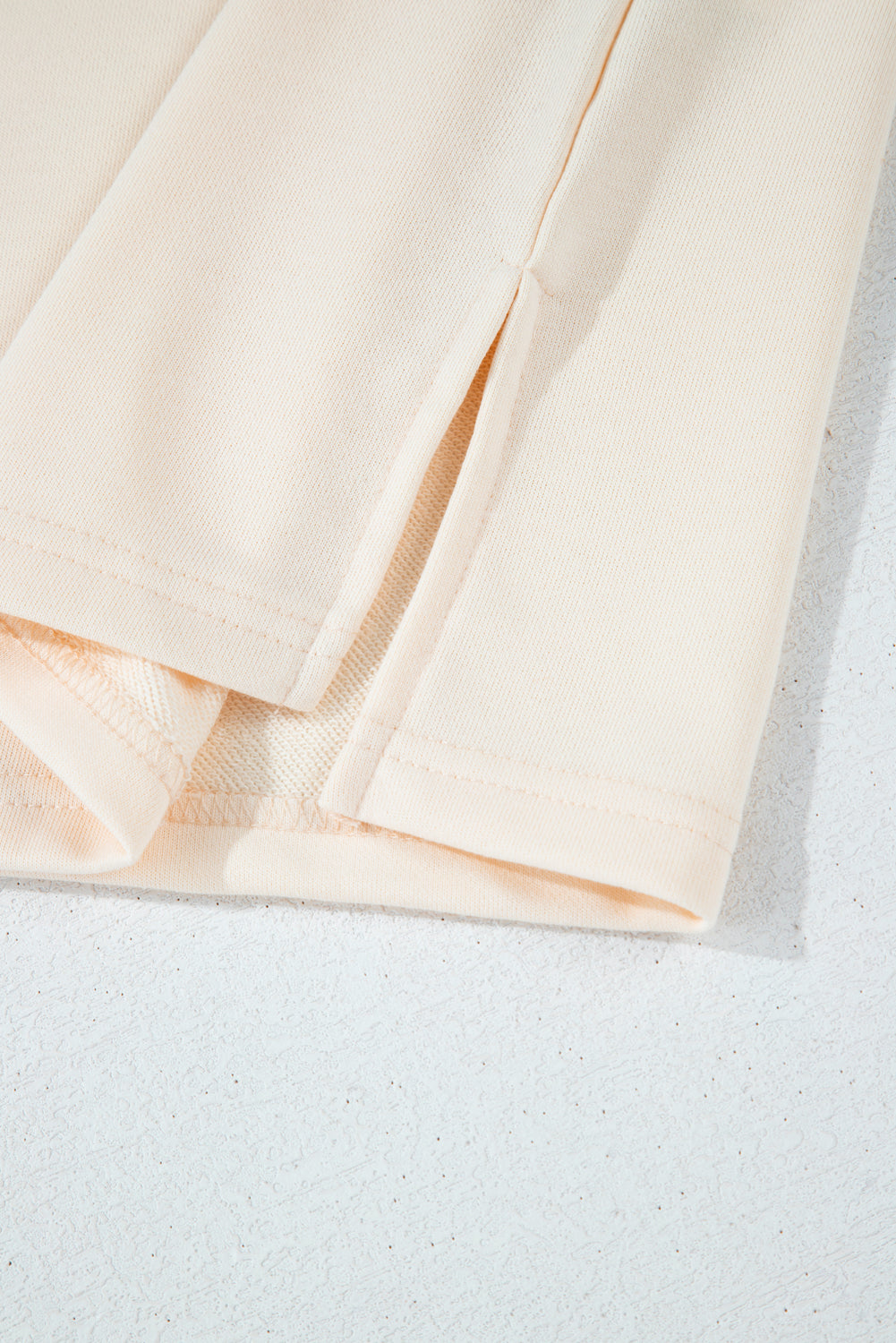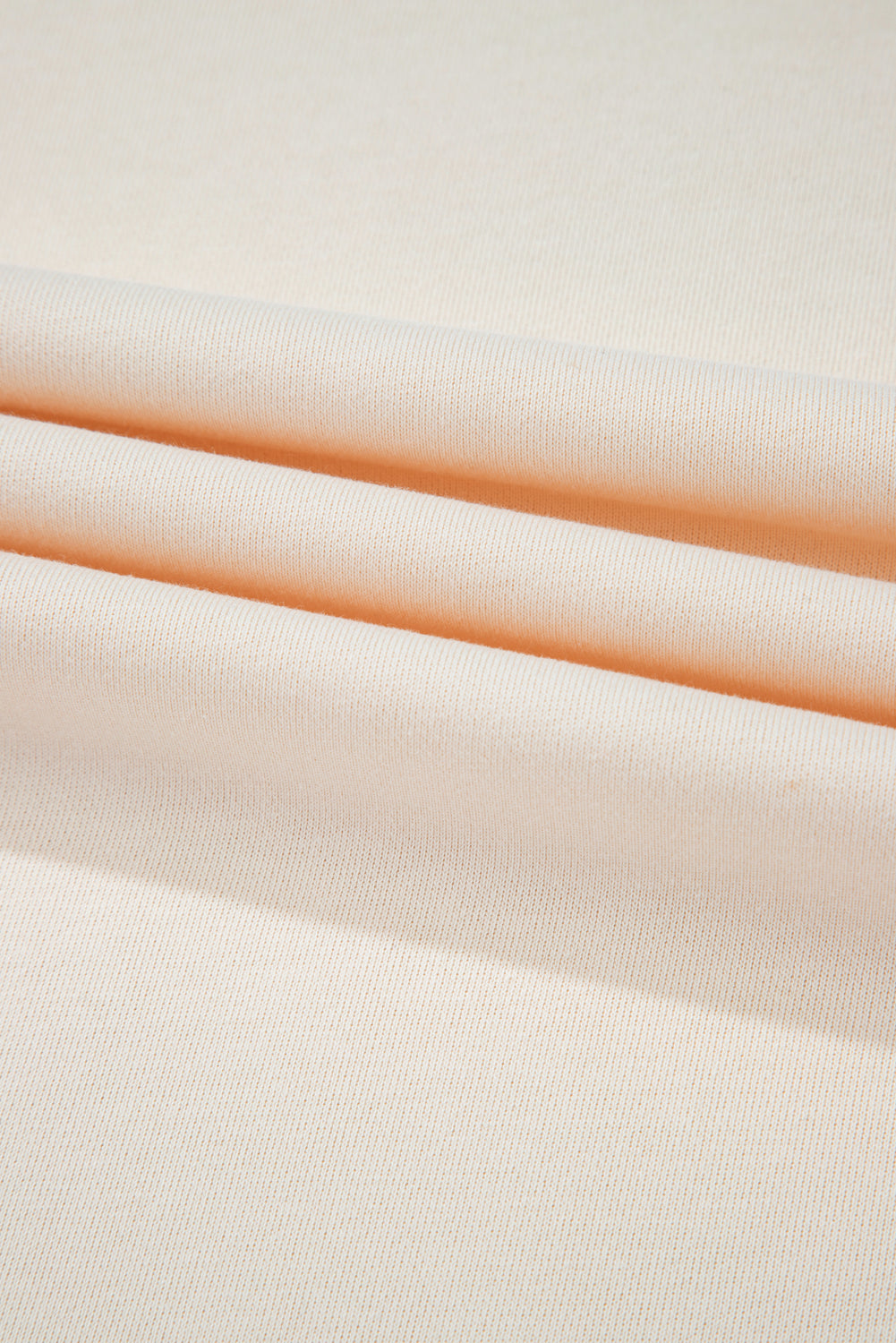 Beige Plus Size Printed Patchwork Sleeve Split Sweatshirt