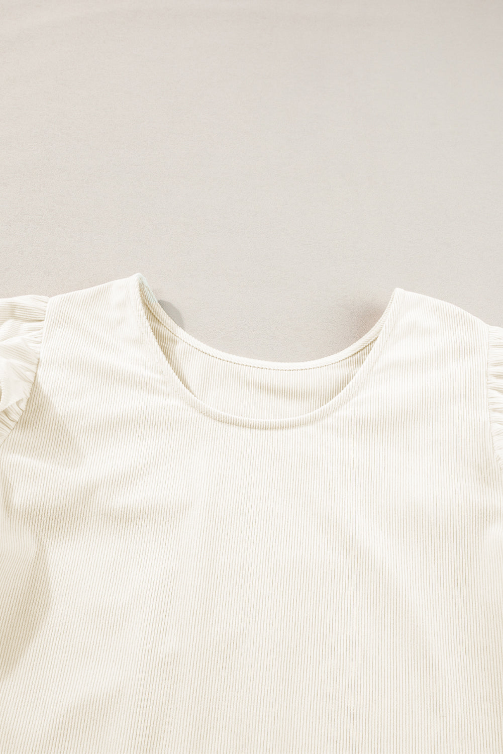 Beige Ruffled Flounce Sleeve Corduroy Blouse