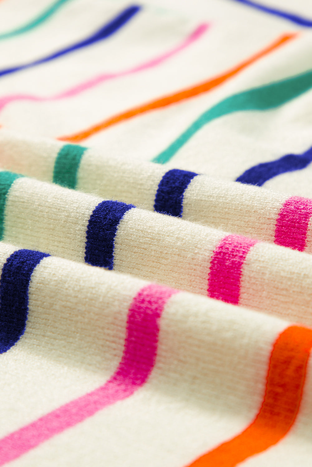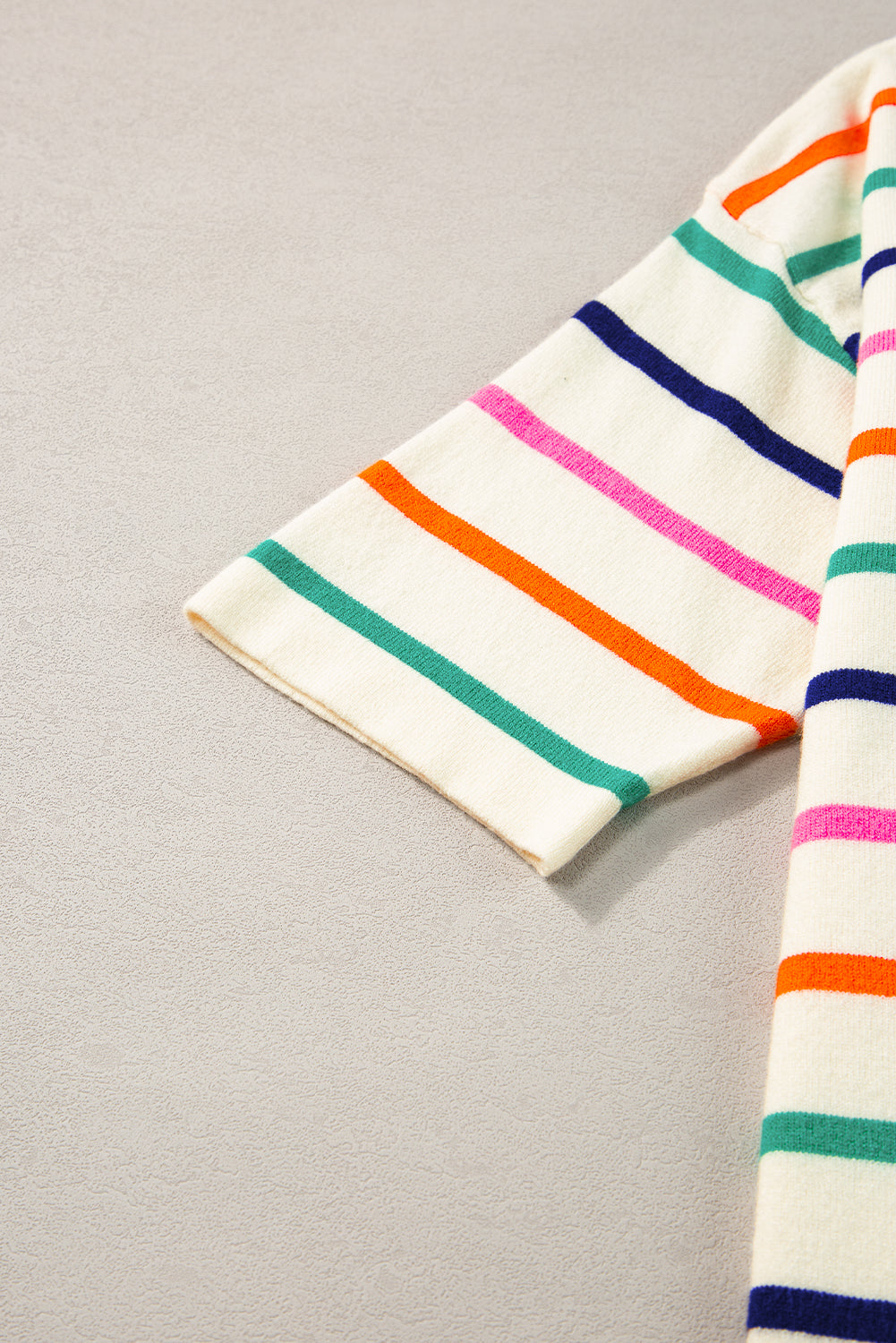 Beige Stripe Dropped Short Sleeve Boxy Fit Knitted Top