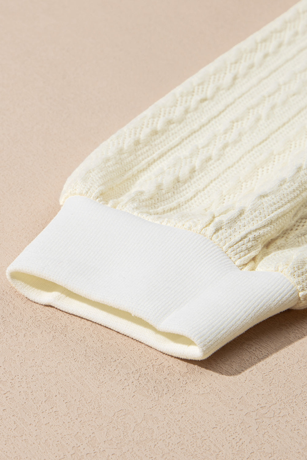 Beige Textured Patchwork Exposed Seam Plus Size Hoodie