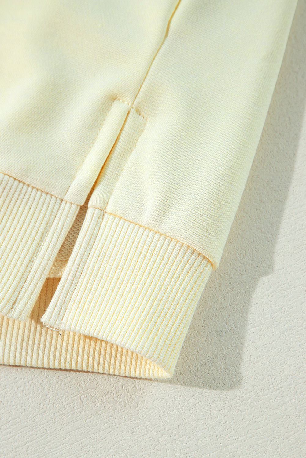 Beige Tinsel Flower Dropped Puff Sleeve Sweatshirt