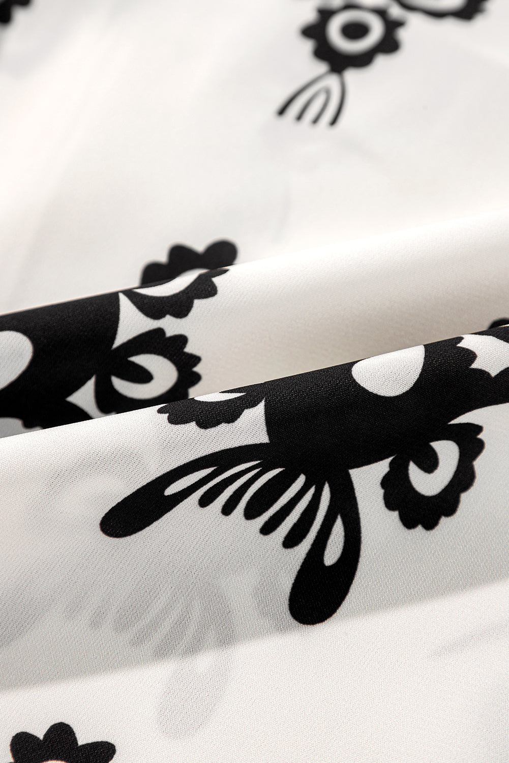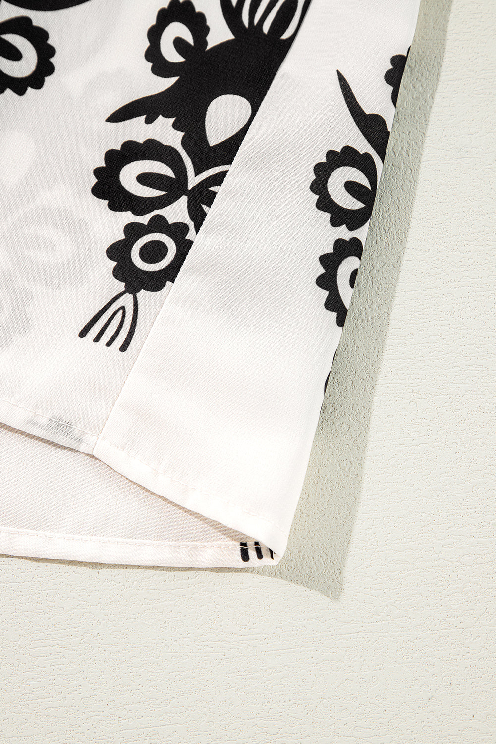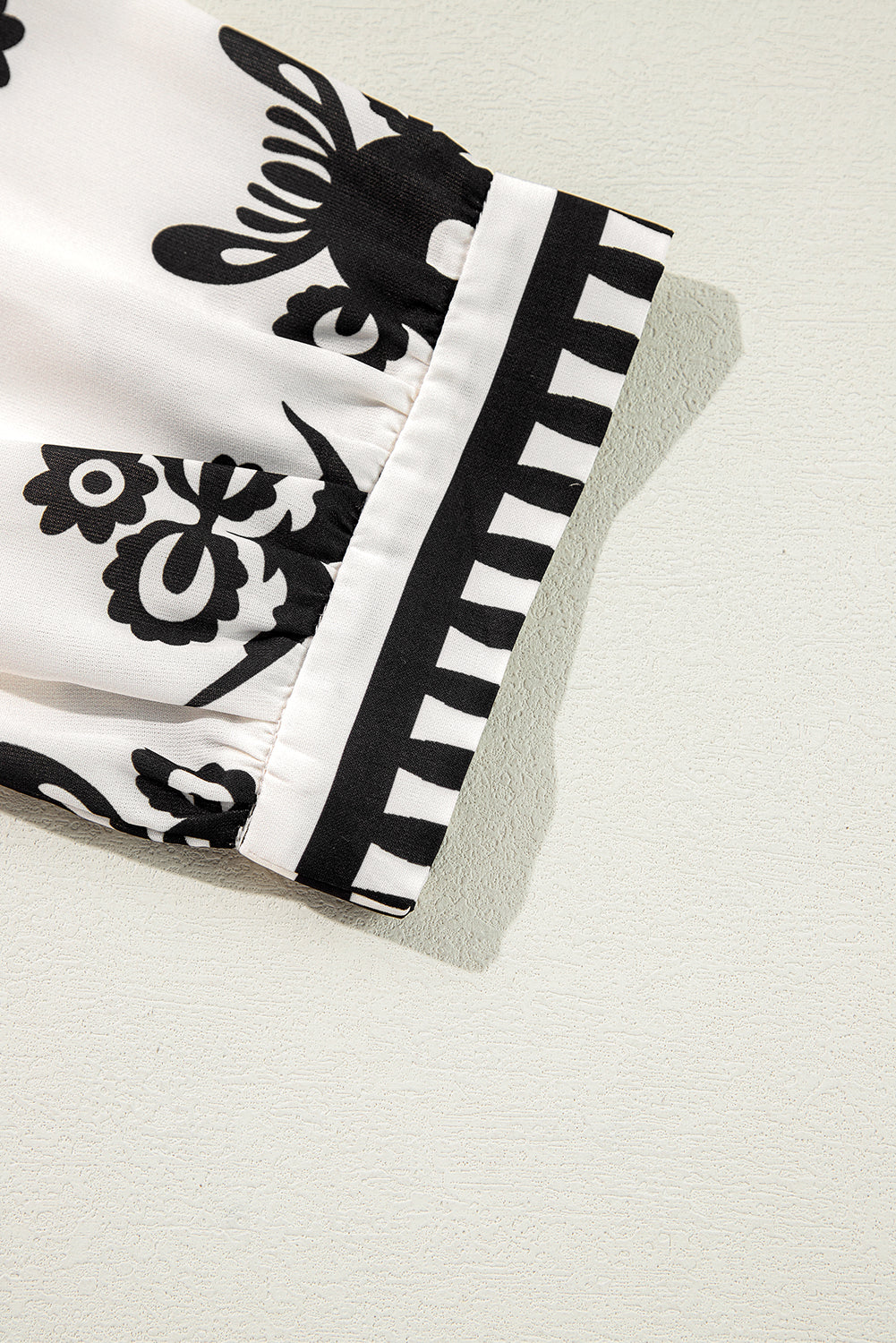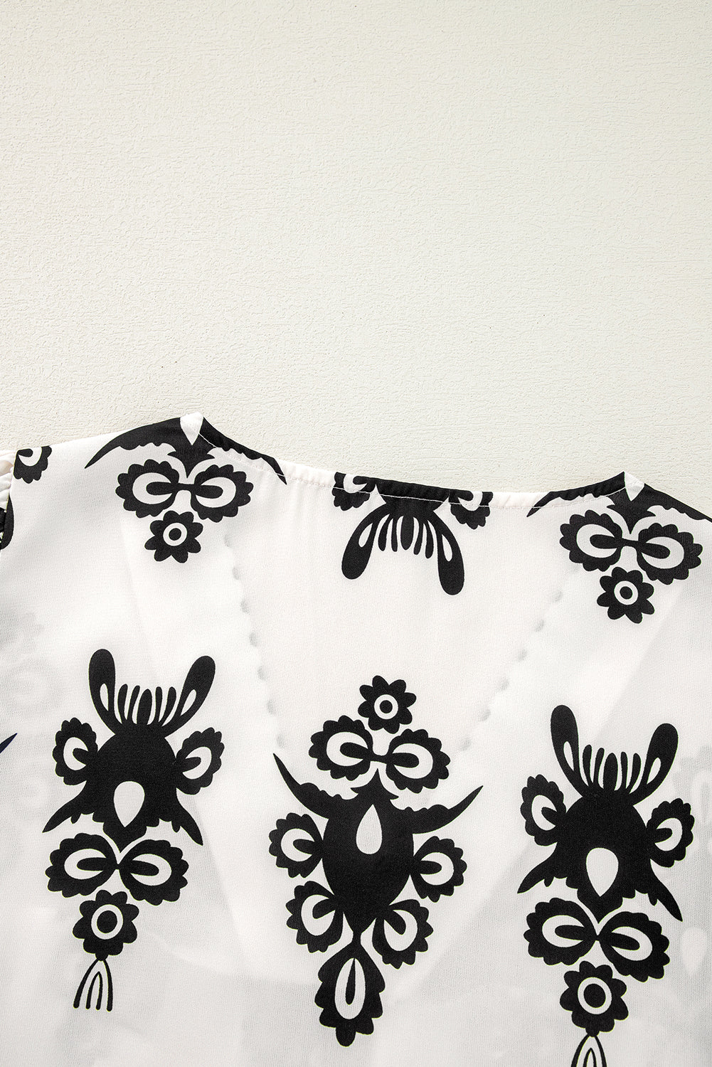 Beige Vintage Geometric Printed 3/4 Sleeve V Neck Blouse