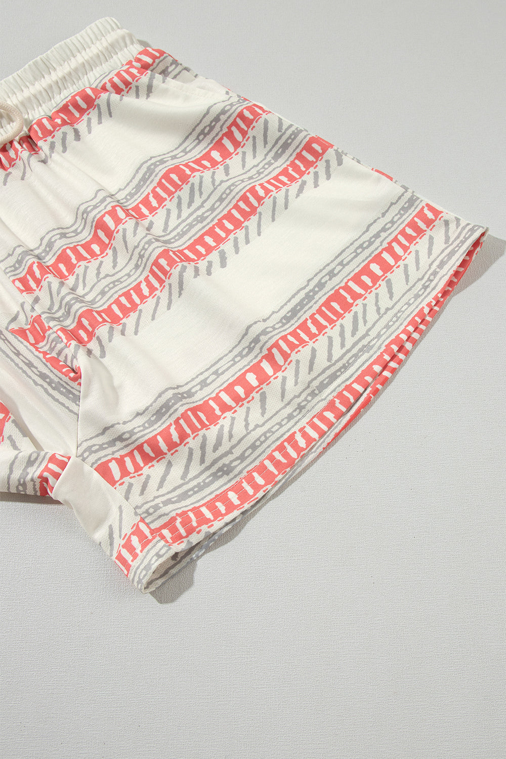 Beige Western Striped Print Casual Tank 2pcs Outfit