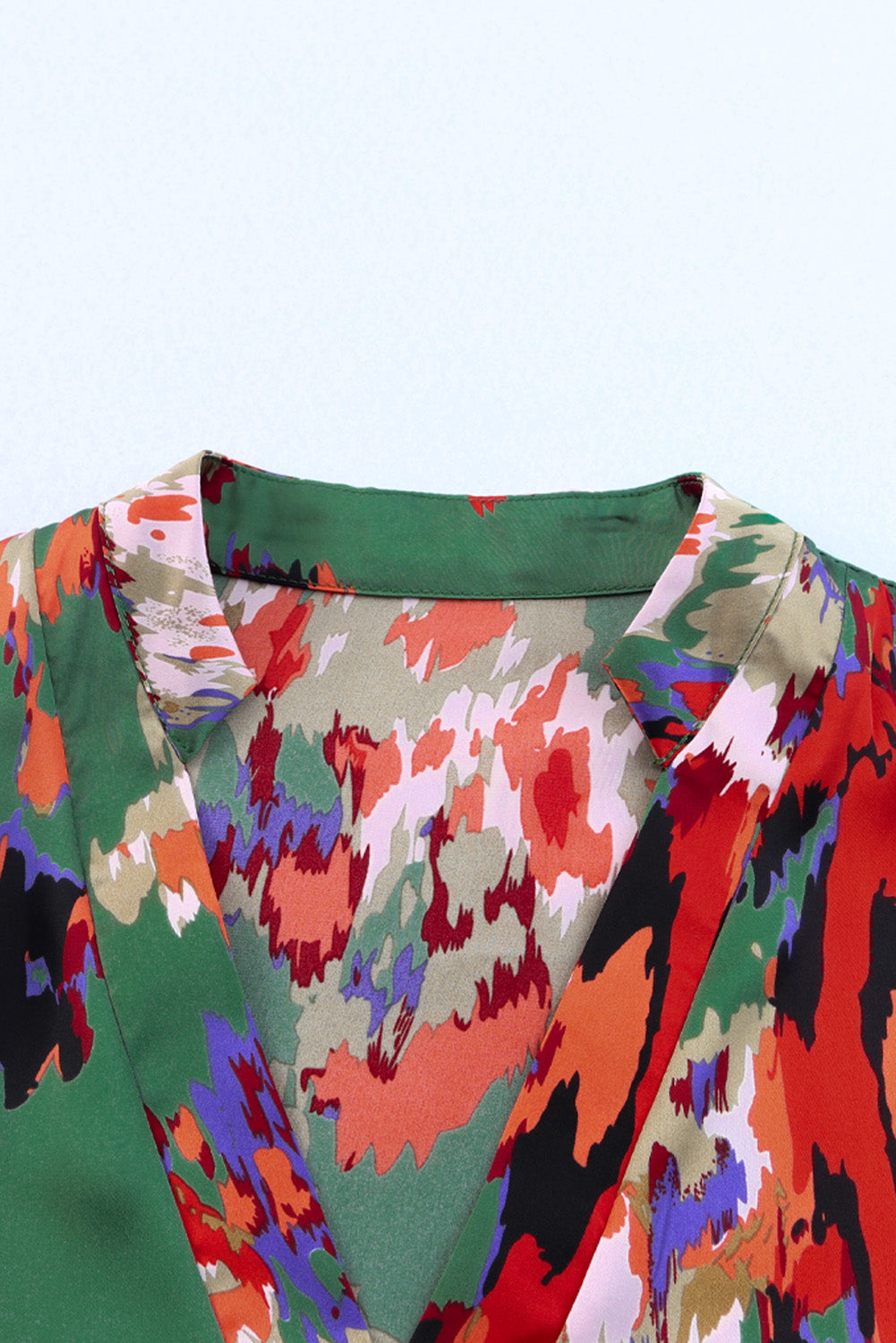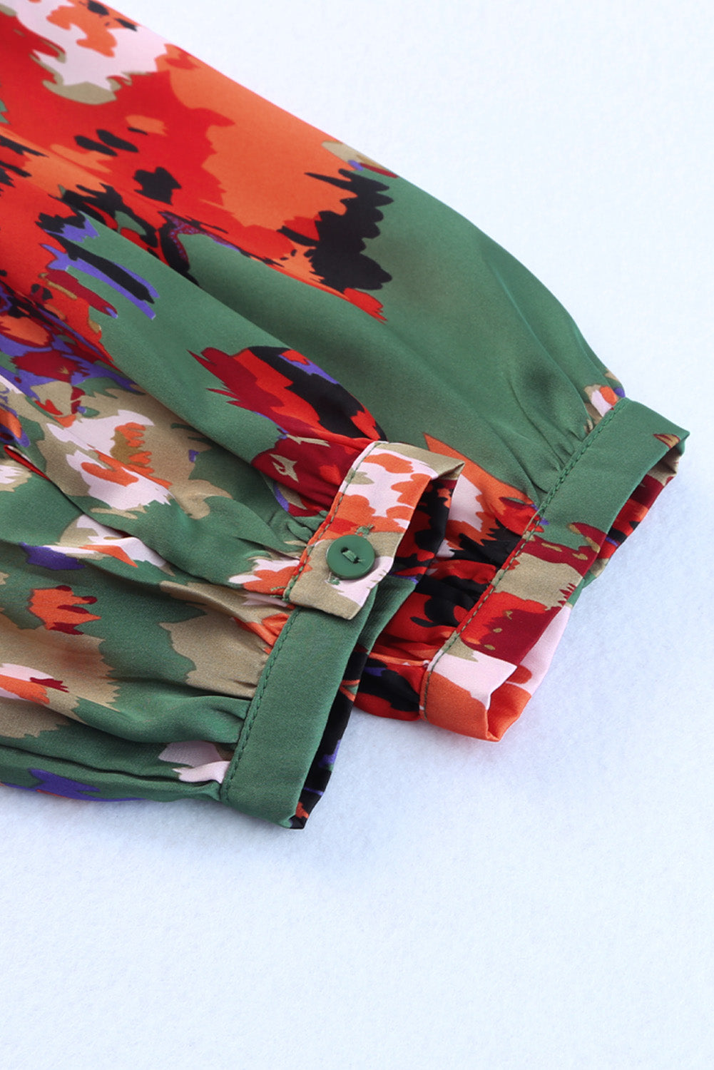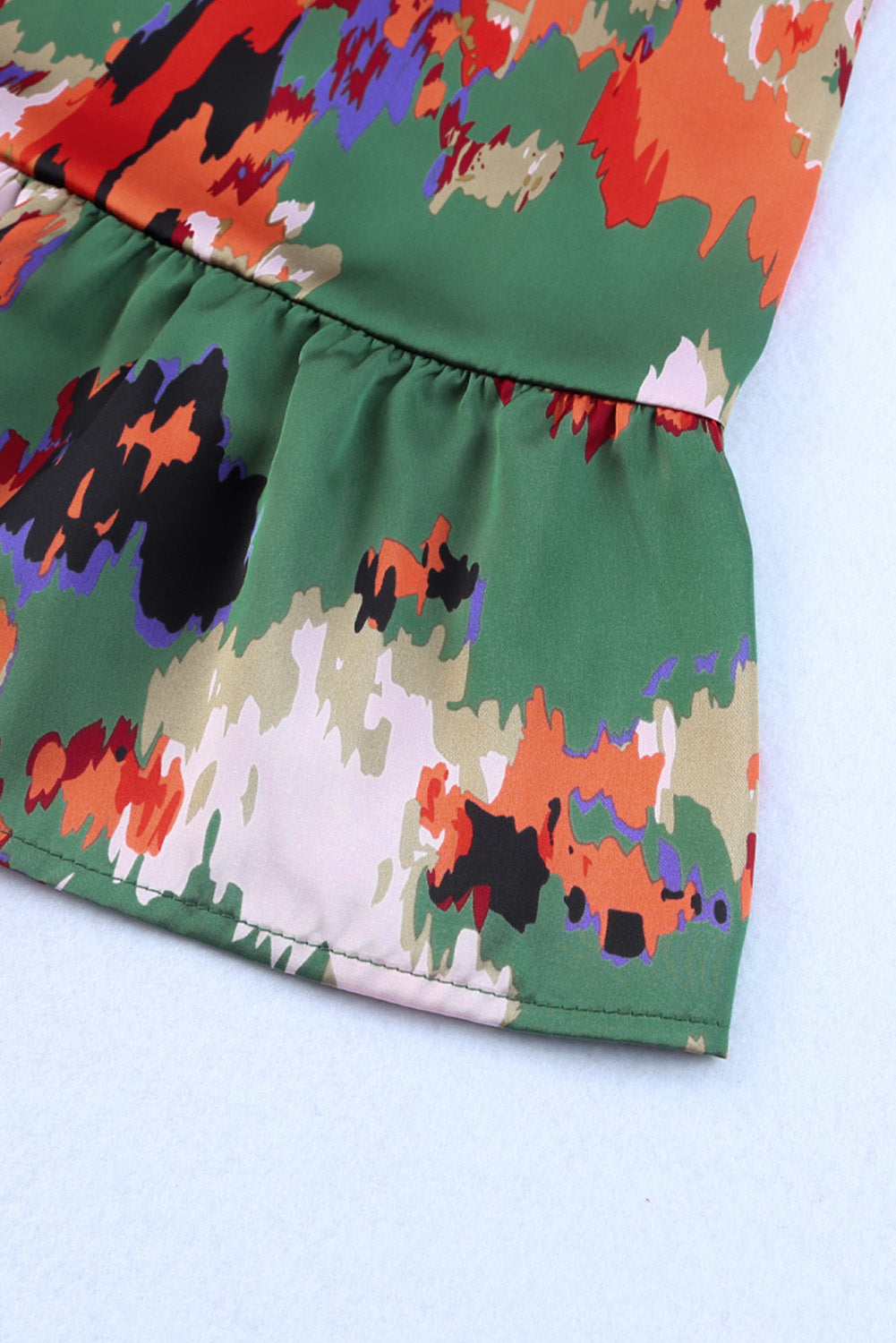 Black Abstract Print Ruffled Drawstring High Waist Mini Dress