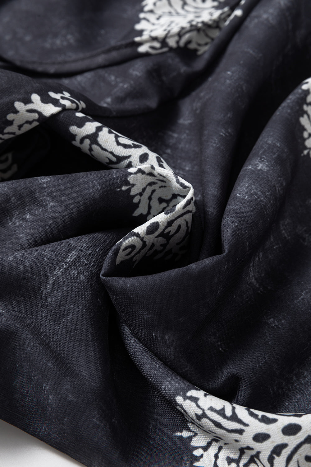 Black Bohemian Printed Drawstring Waist Wide Leg Pants