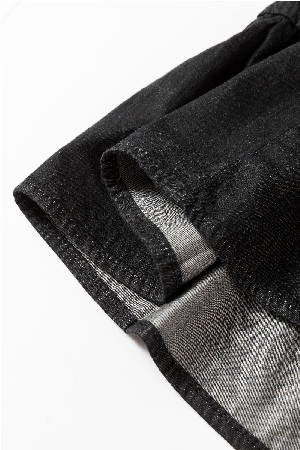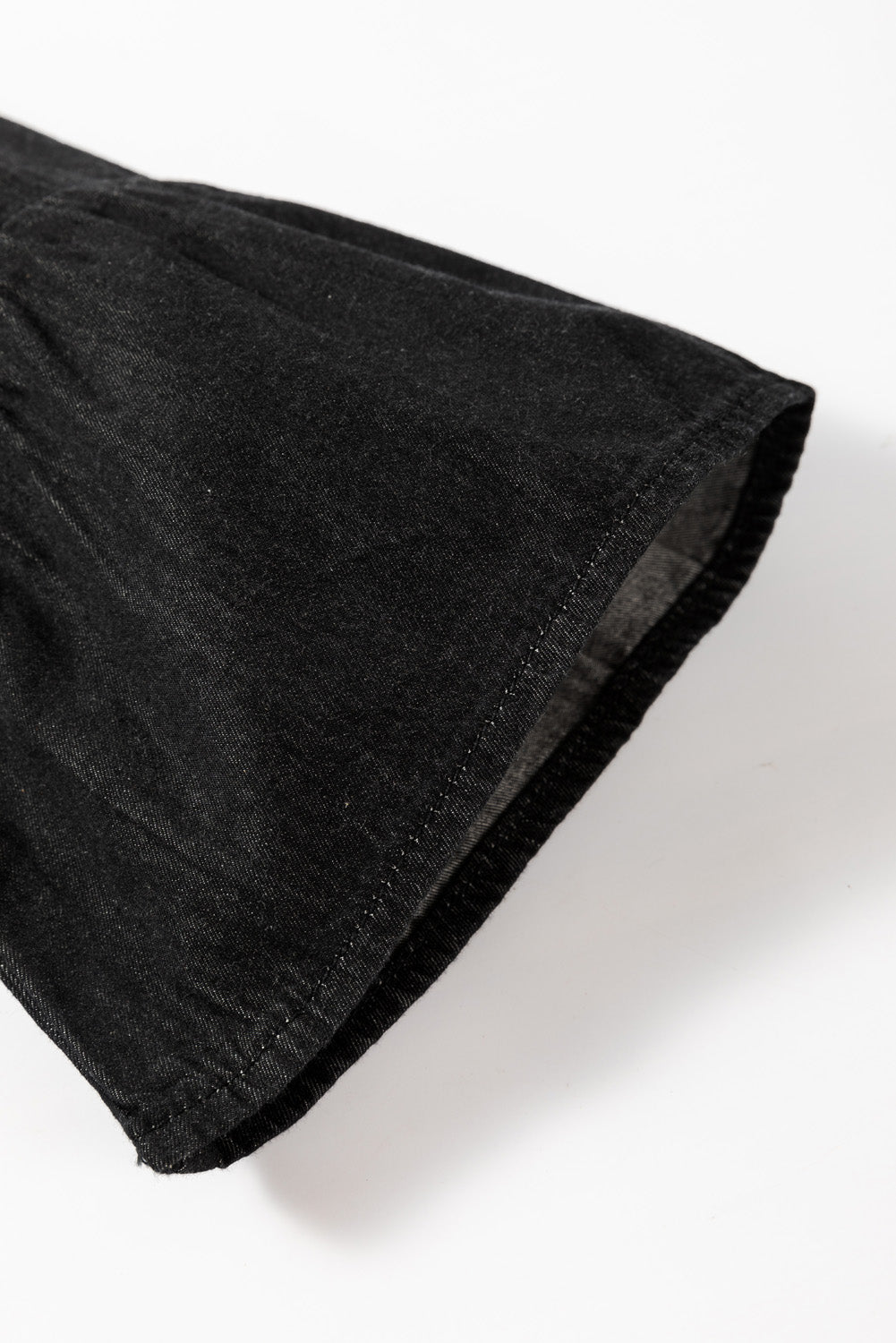 Black Chambray Ruffled 3/4 Sleeve Tiered Split V Neck Mini Dress