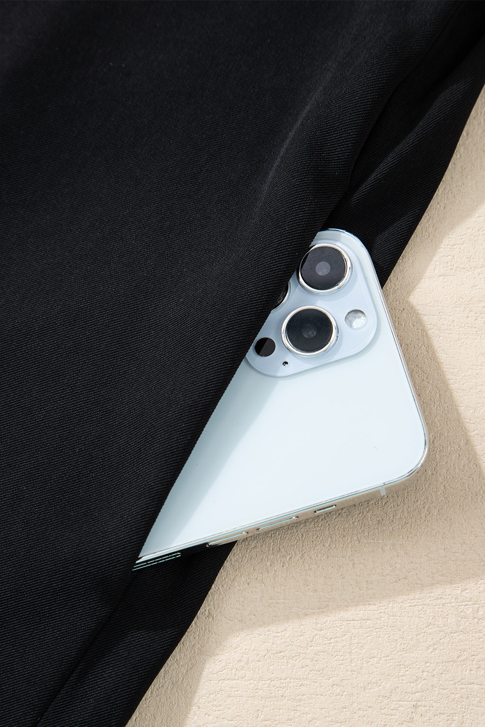 Black Collar Tab Sleeve Zip Up Flap Detail Jacket