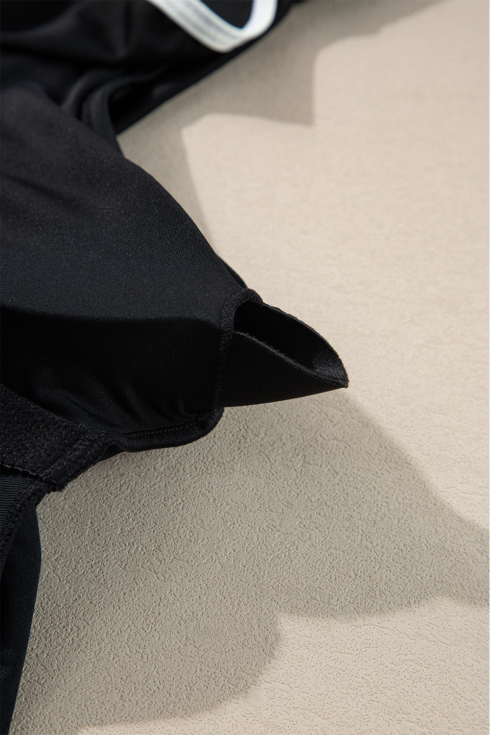 Black Color Contrast Ruffled Wrap V Neck Swimsuit