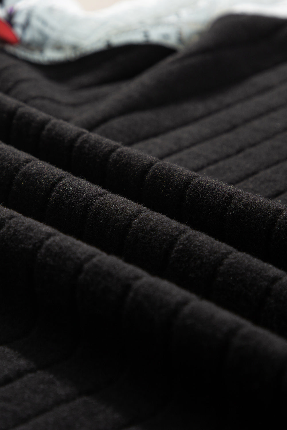 Black Floral Patchwork Long Sleeve Ribbed Blouse