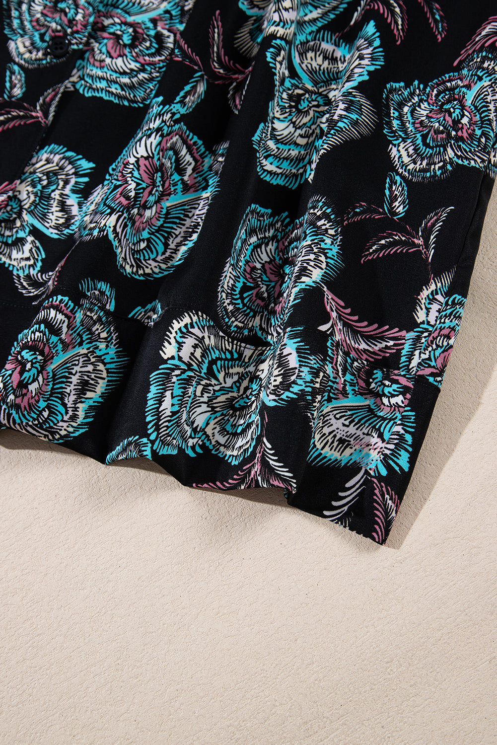 Black Floral Print Lapel Collar Loose Shirt Mini Dress