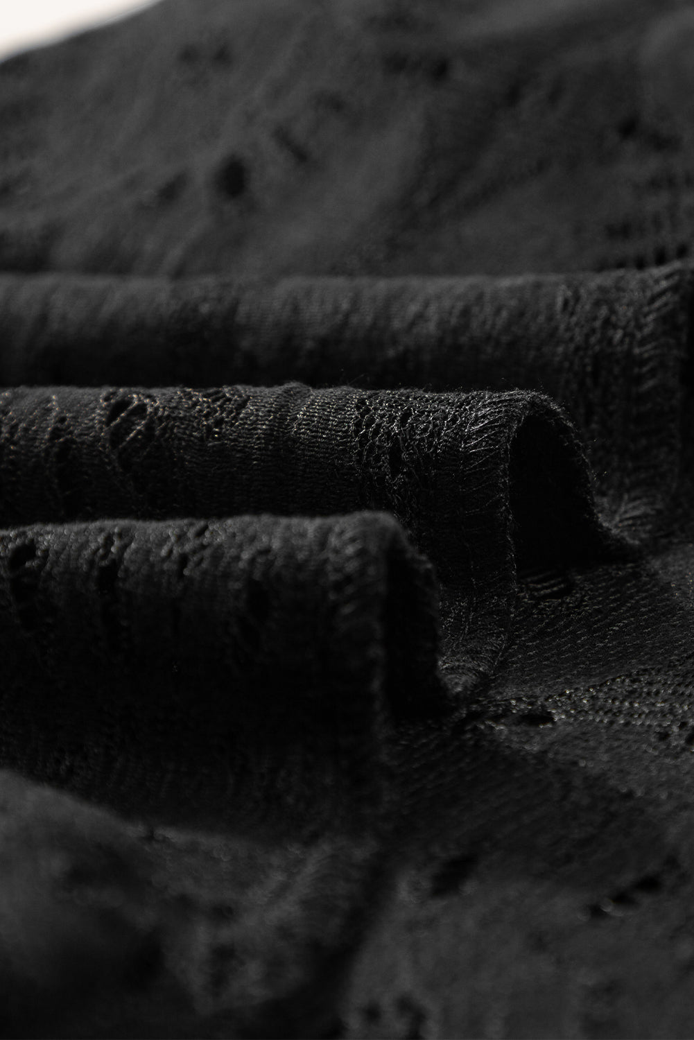 Black Flower Eyelet Jacquard Keyhole Flounce Sleeve Top