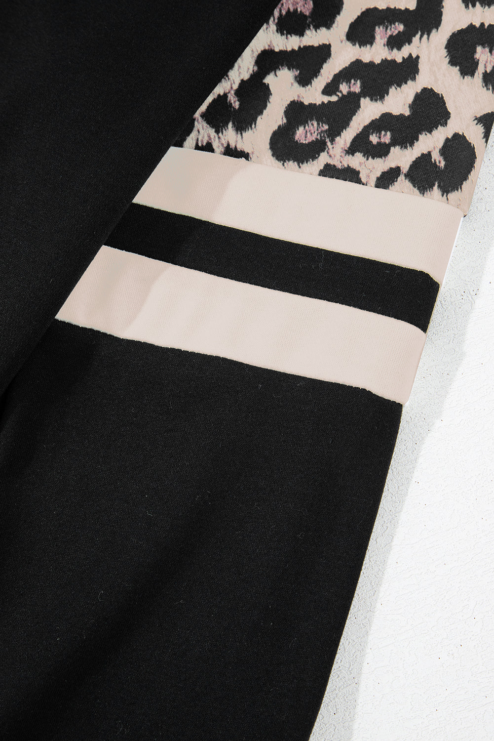 Black Leopard Print Colorblock Raglan Sleeve Sweatshirt