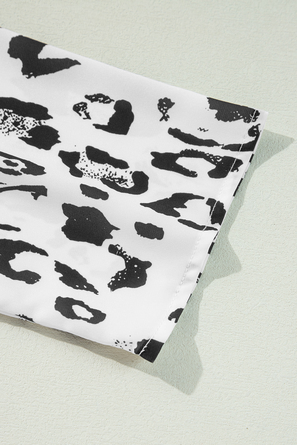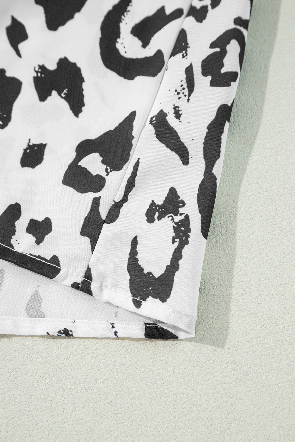 Black Leopard Print Ruched V Neck 3/4 Sleeve Blouse