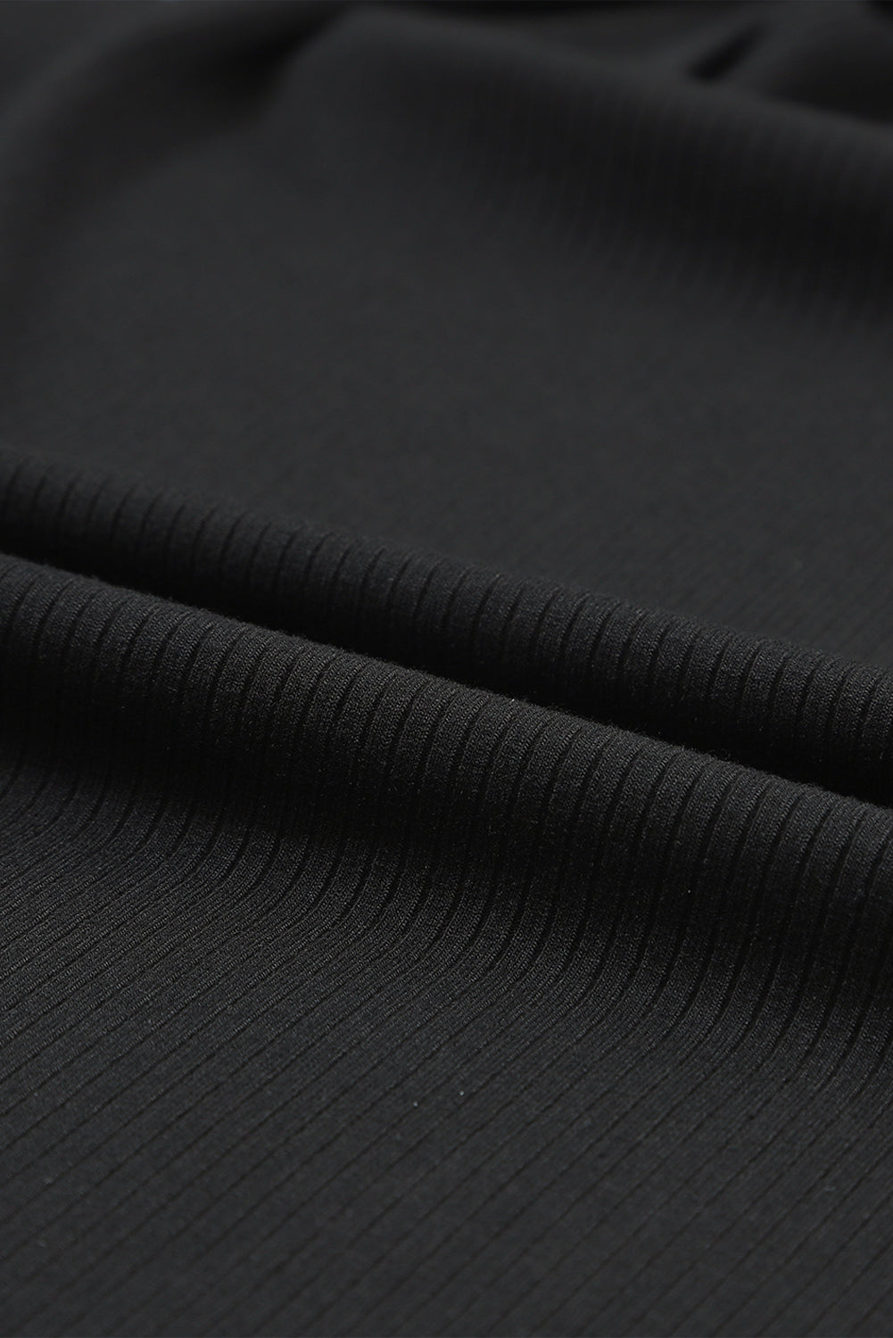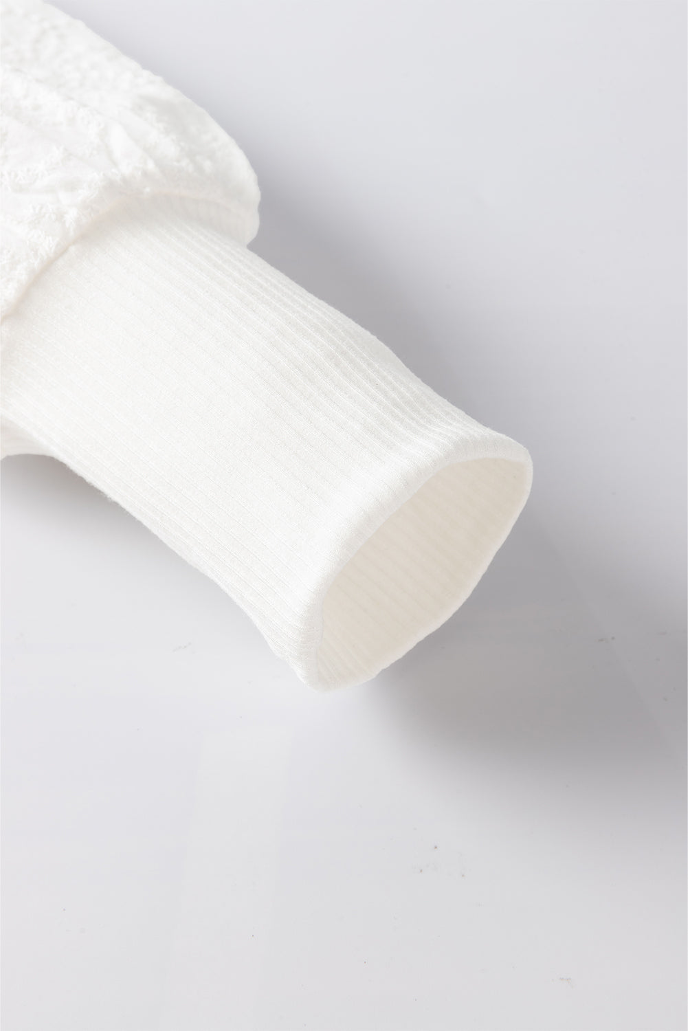 Black Plus Size Daisy Embroidered Puff Sleeve Ribbed Knit Top