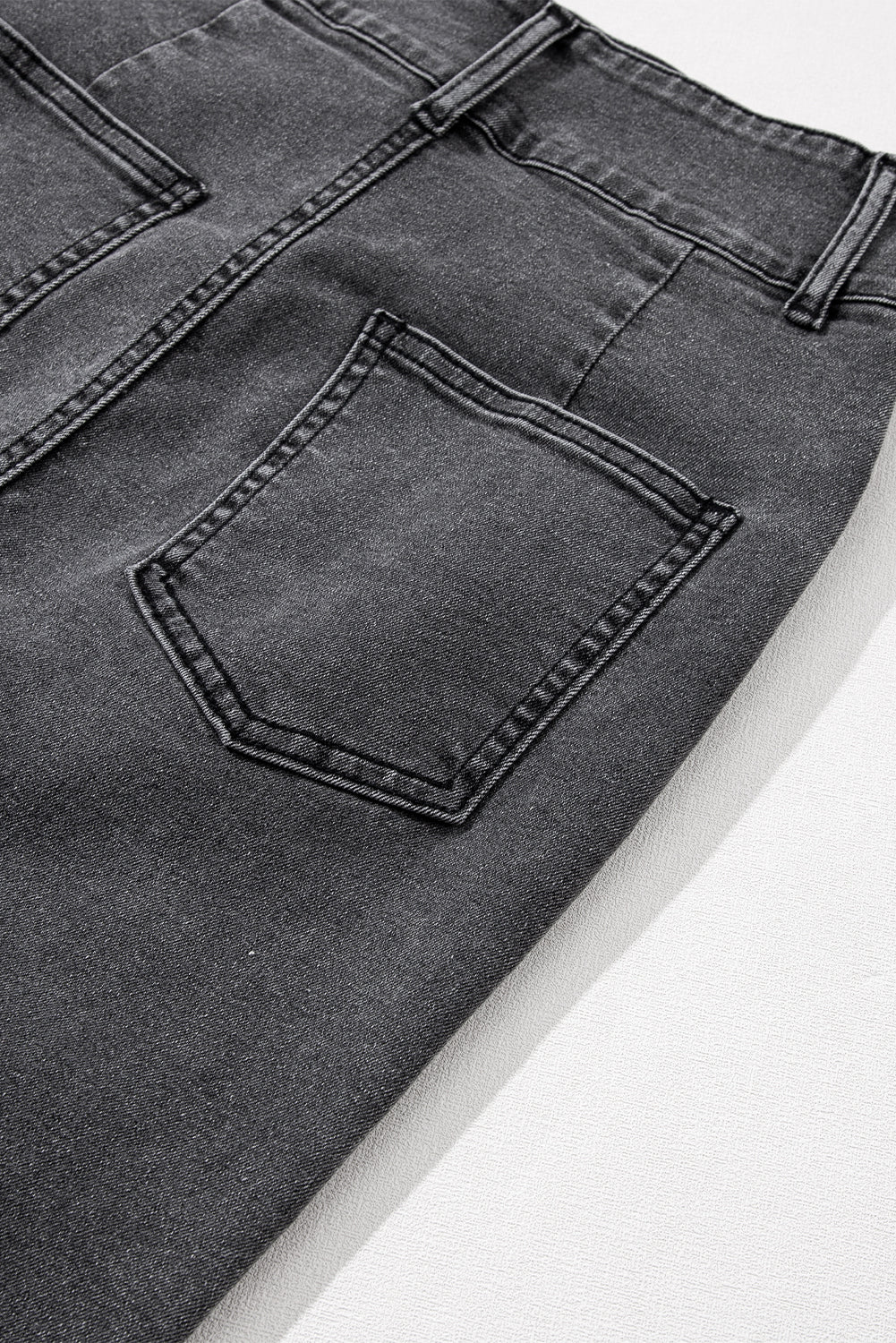 Black Raw Edge Side Slits Buttoned Midi Denim Skirt