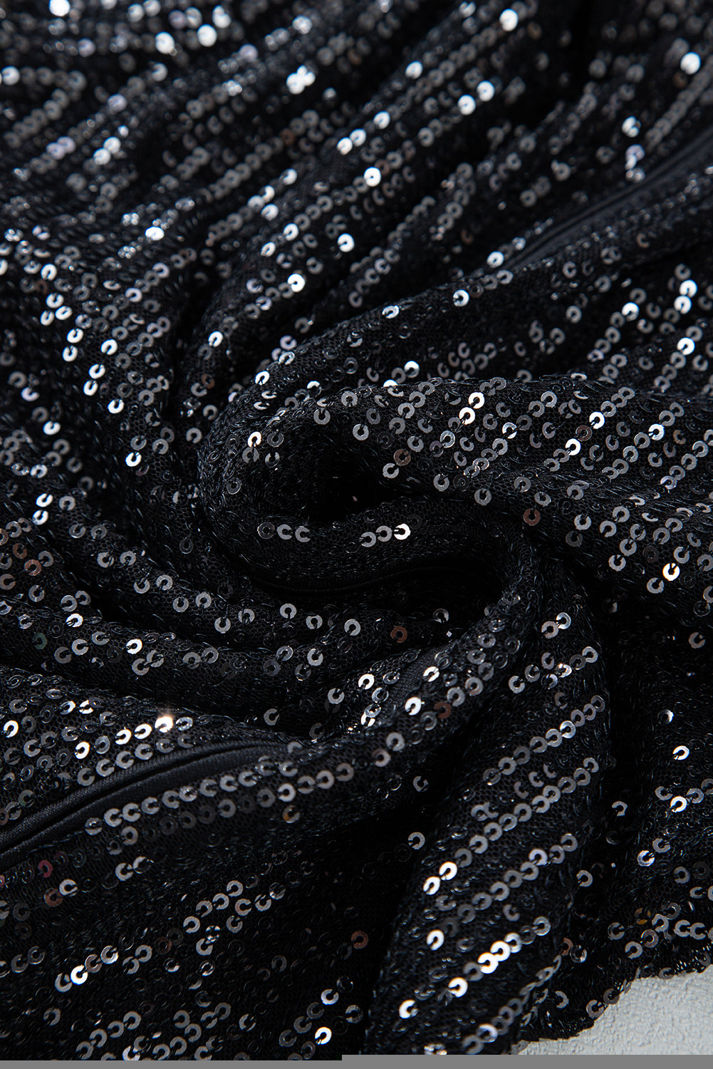 Black Sequin V Neck Zipped Long Sleeve Bodysuit