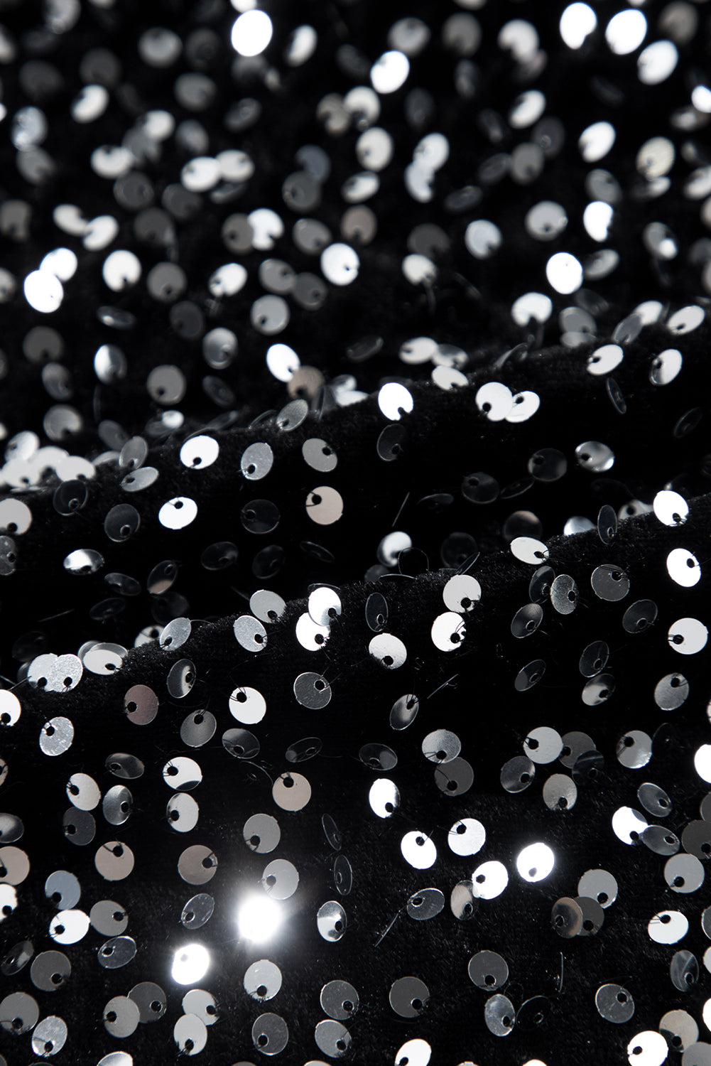 Black Sequined Long Sleeve Crew Neck Cropped Blouse