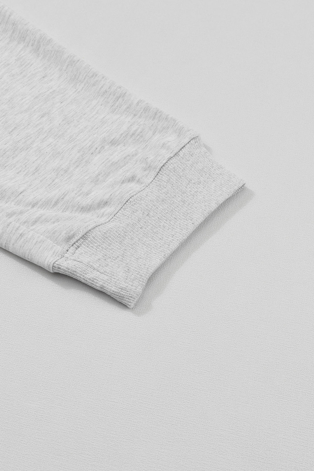 - Includes a loose sweatshirt with a zipped neck, and drawstring pants