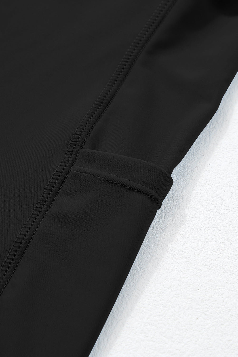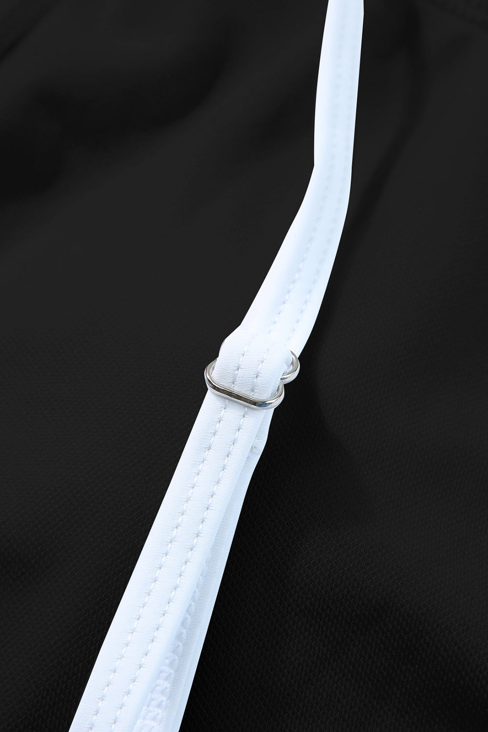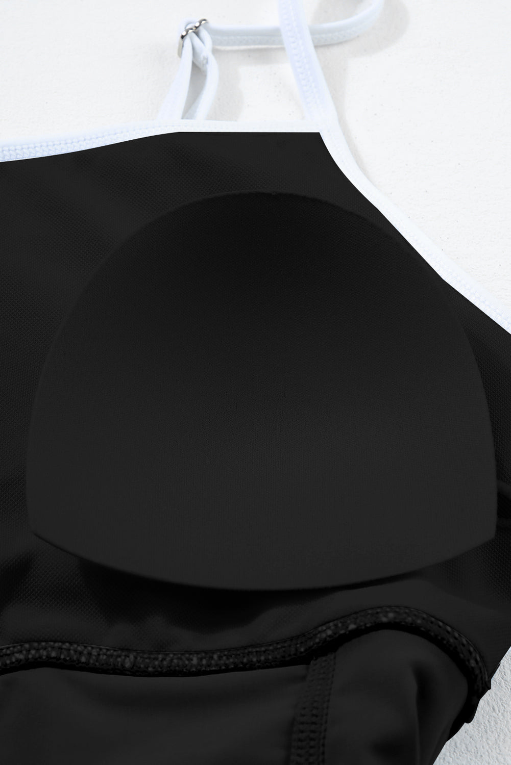Black Sporty Ribbed Spaghetti Straps One Piece Swimdress