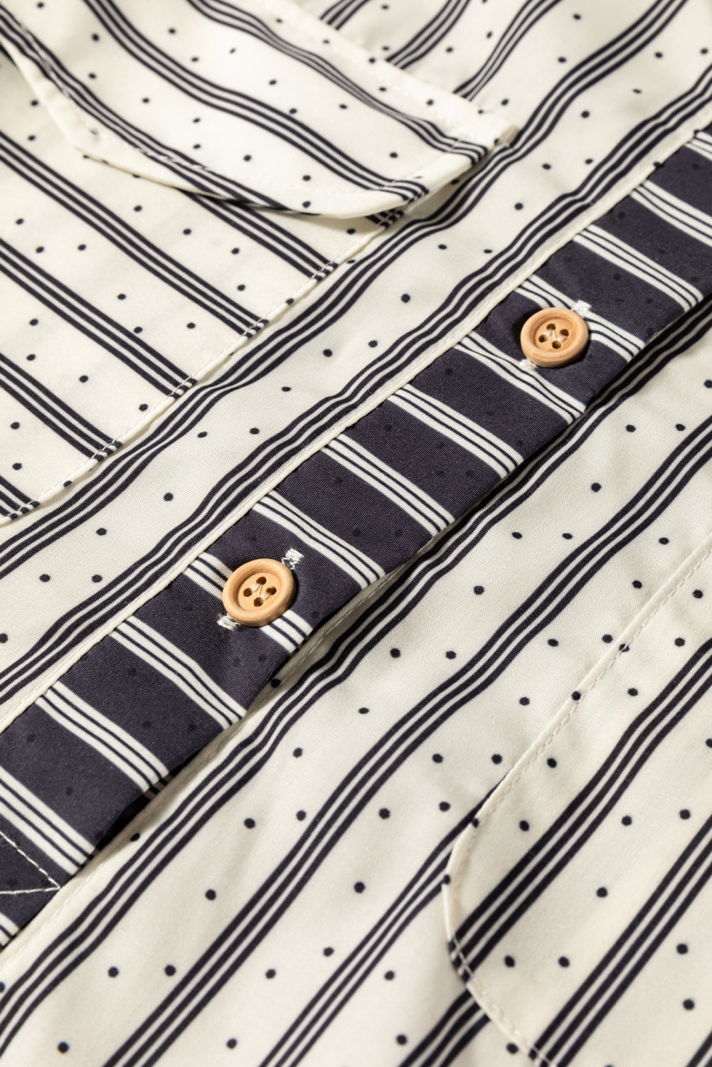 Black Stripe 2-tone Patchwork Half Buttons Chest Pockets Casual Blouse