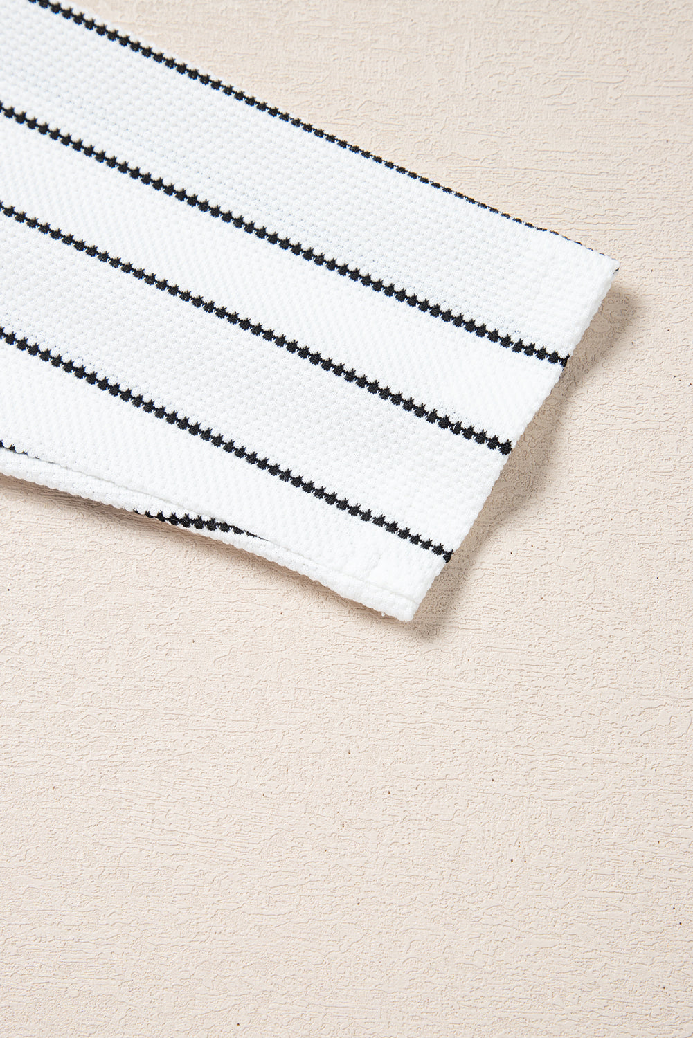 Black Stripe Chevron Striped V Neck Long Sleeve Casual Top