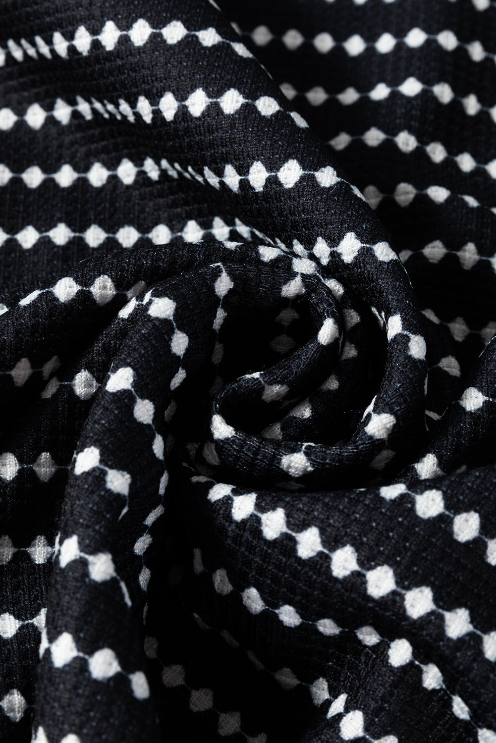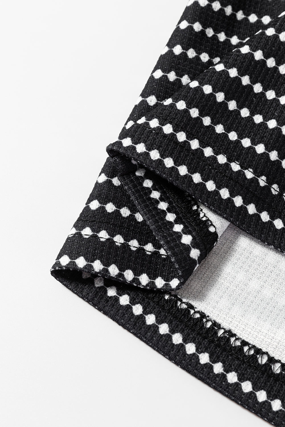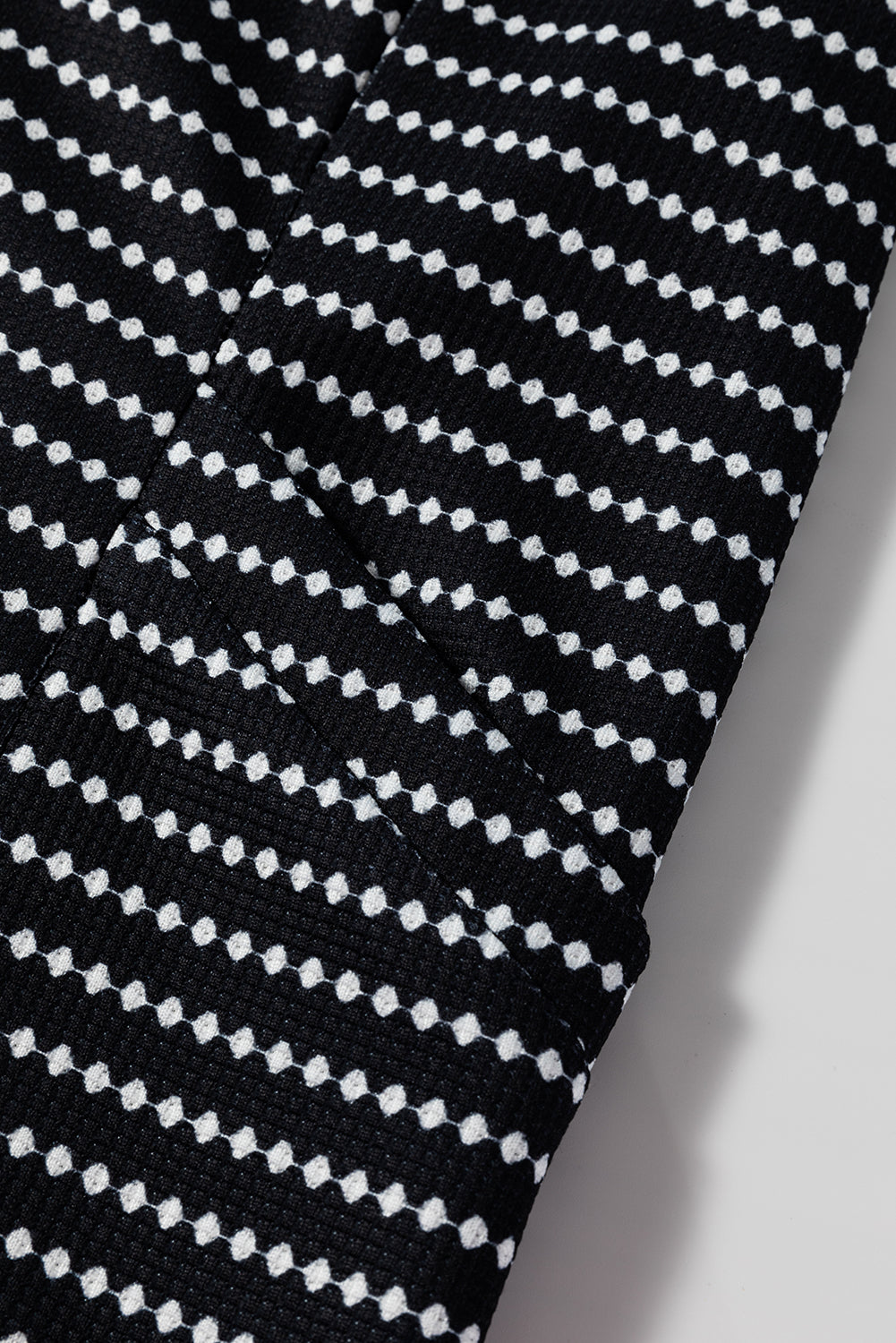 Black Striped V Neck Long Puff Sleeve Shift Dress