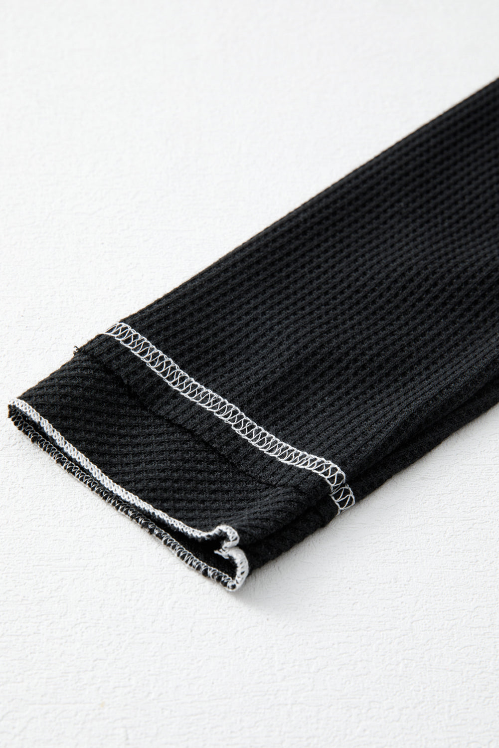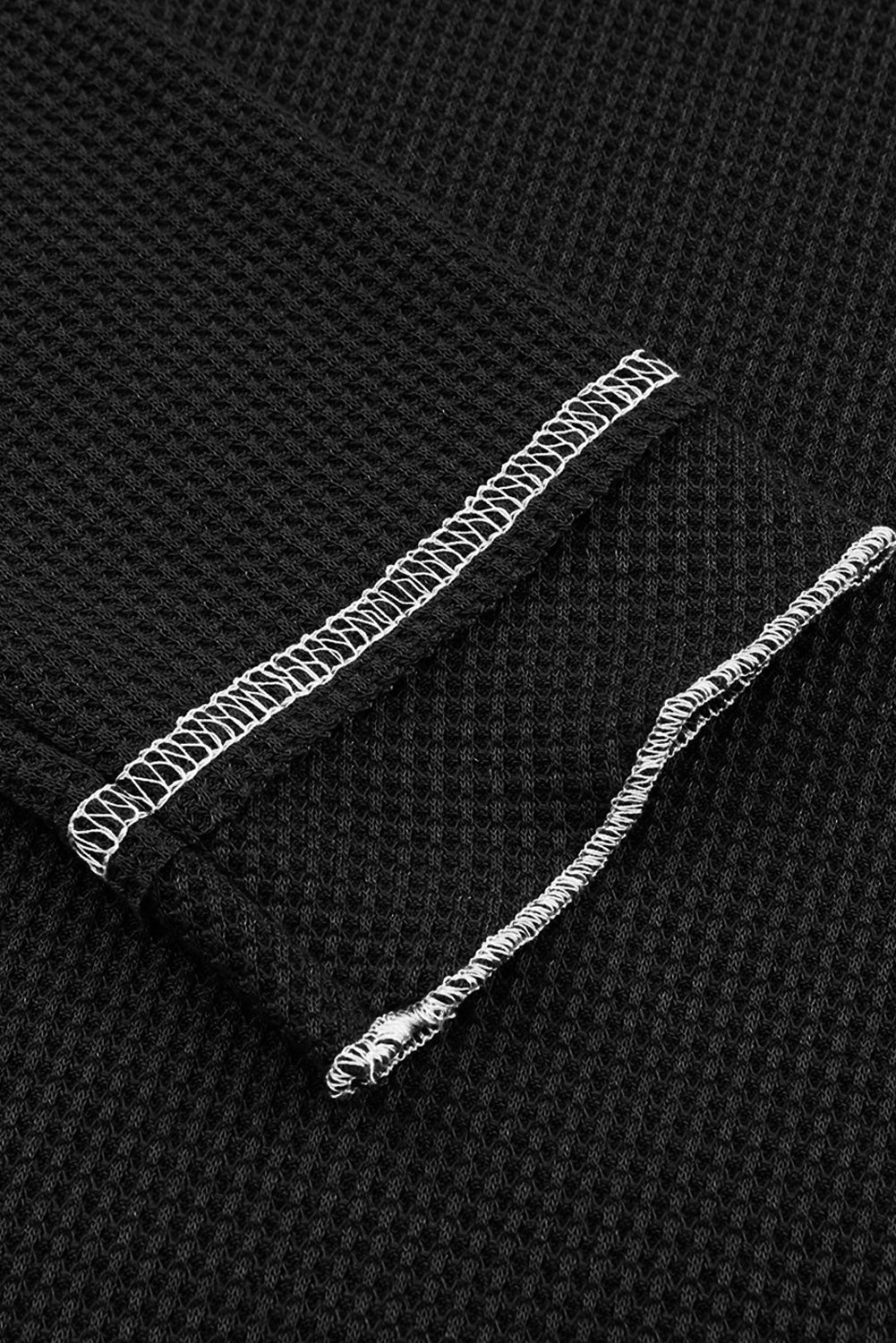 Black Textured Round Neck Long Sleeve Top