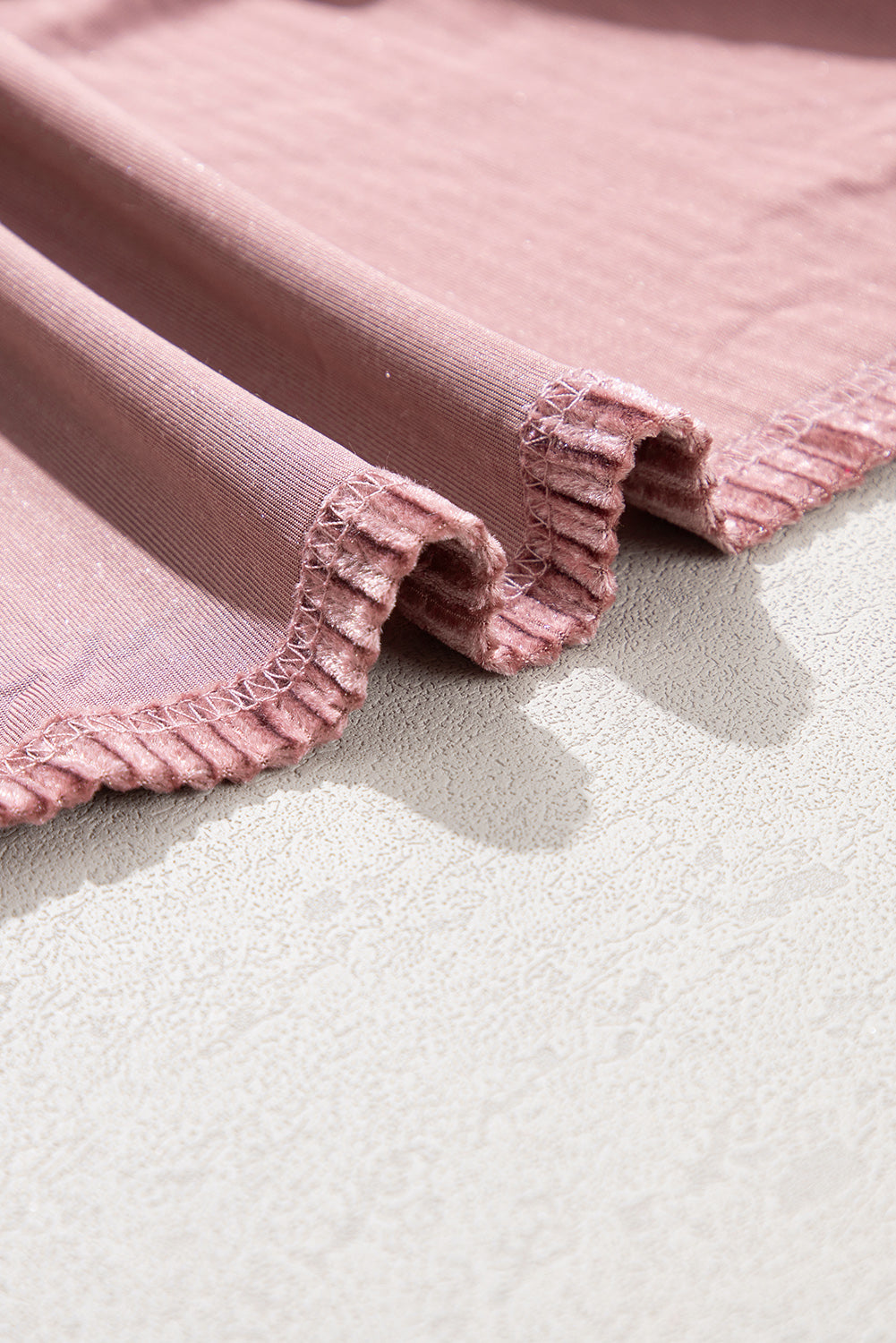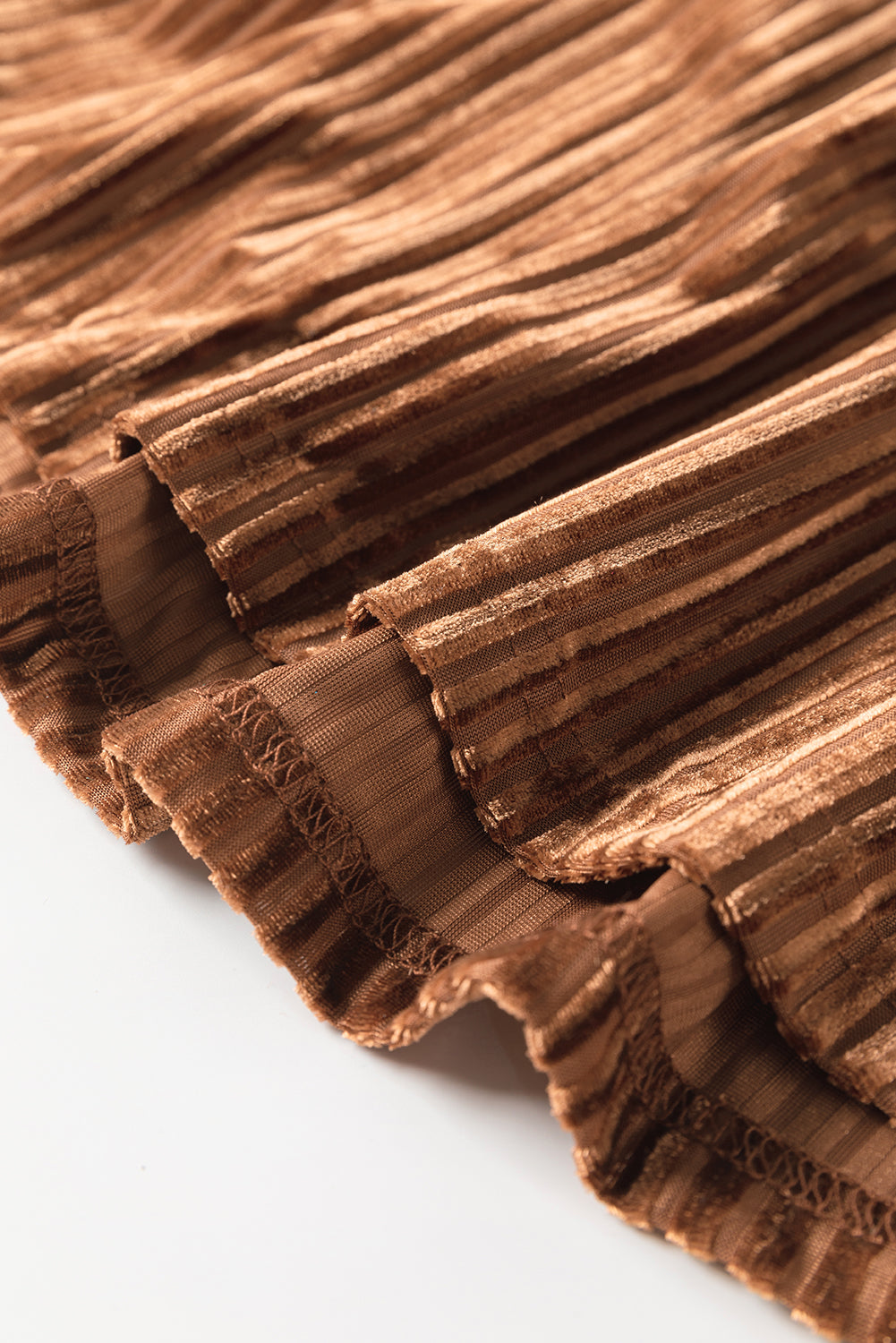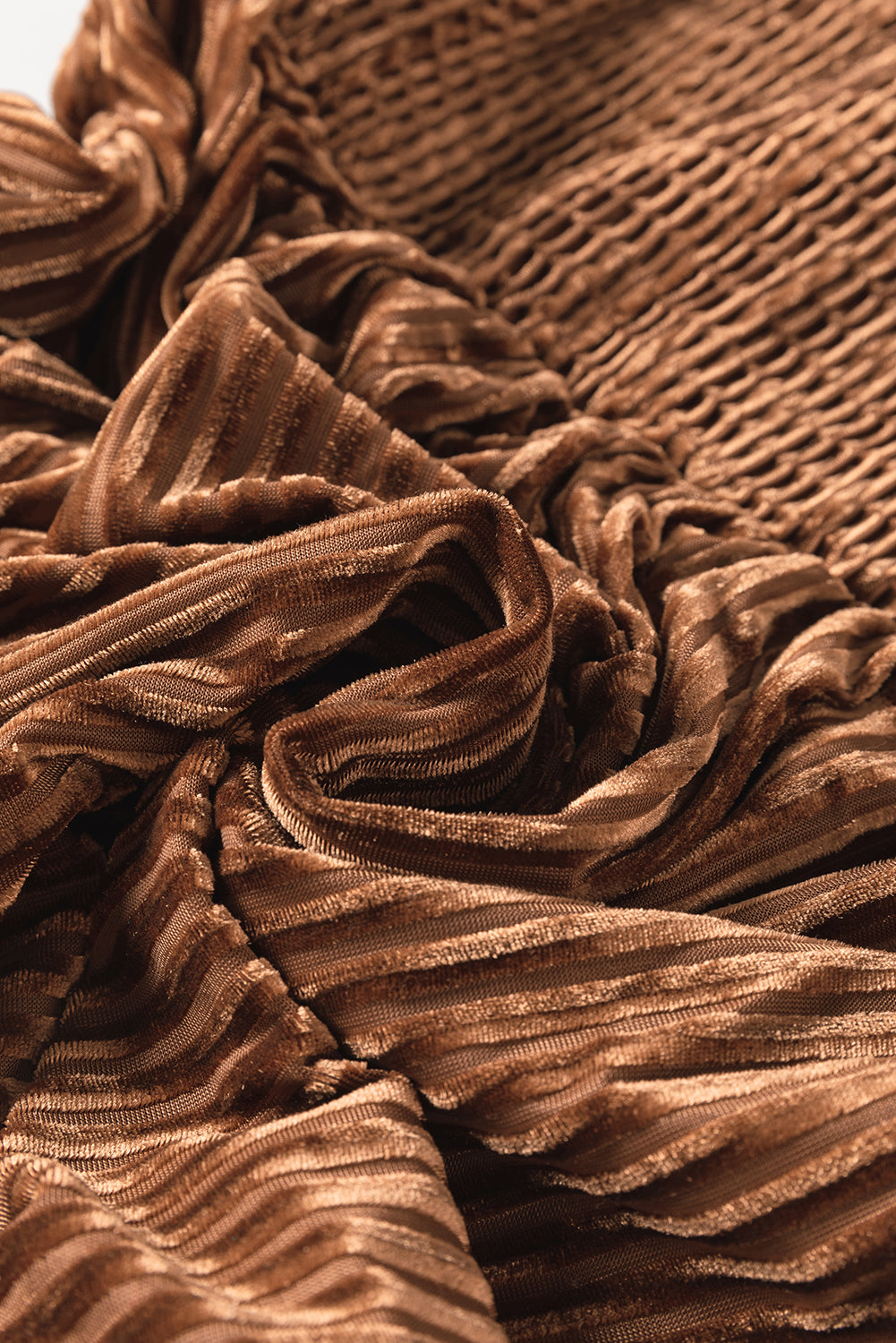 Blackish Green Smocked Ribbed Velvet Babydoll Top