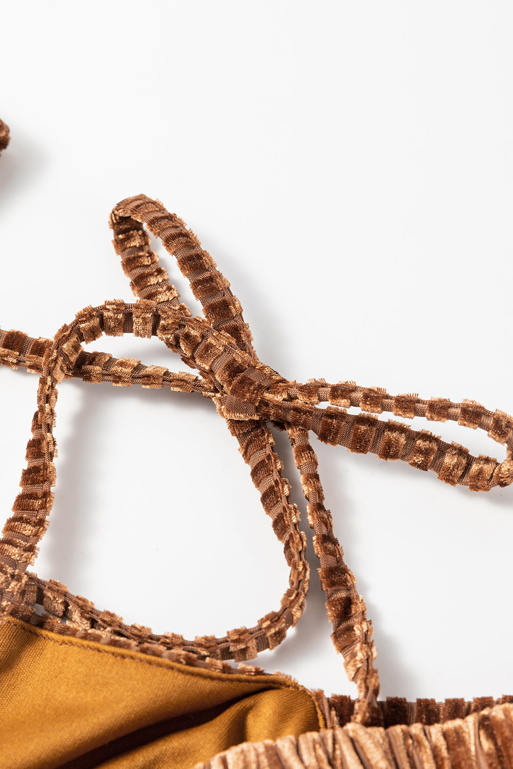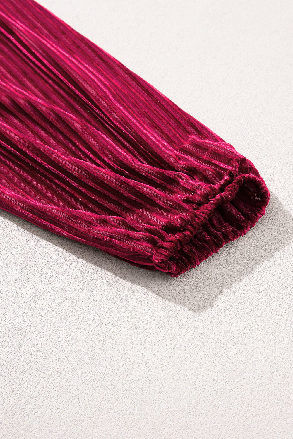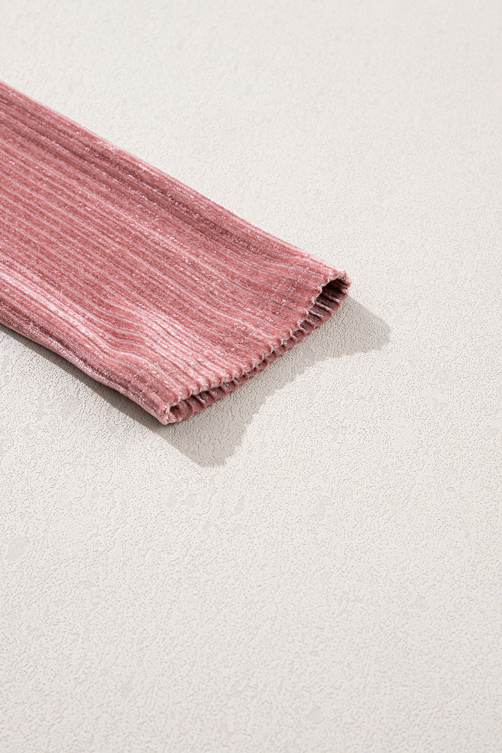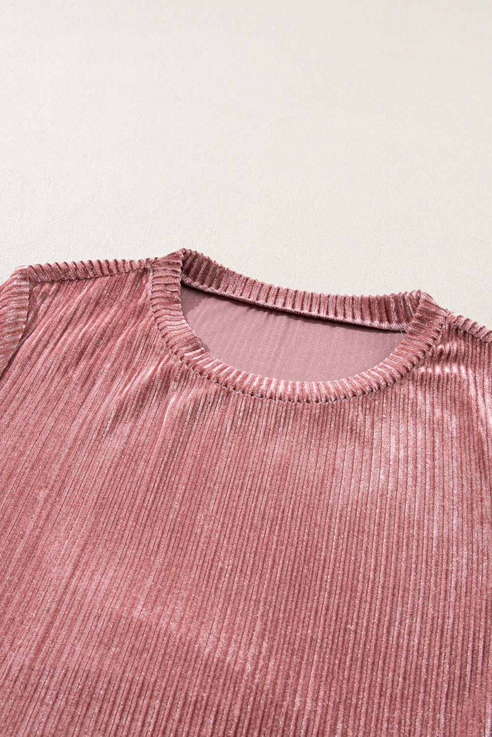 Blackish Green Smocked Ribbed Velvet Babydoll Top