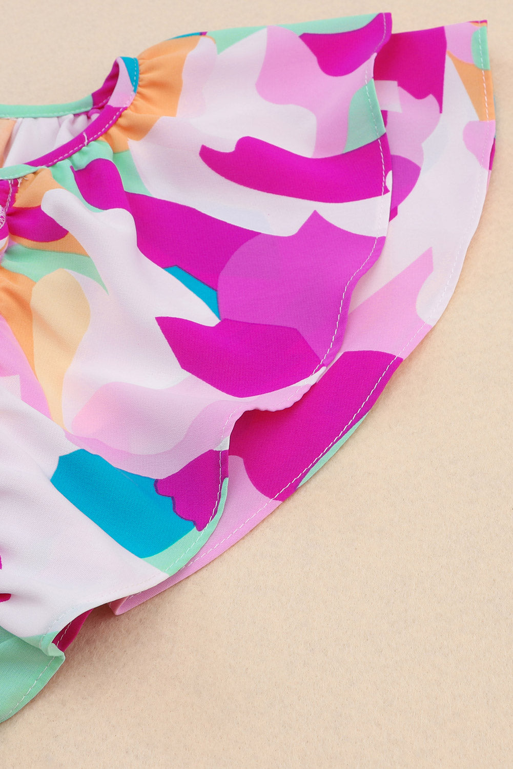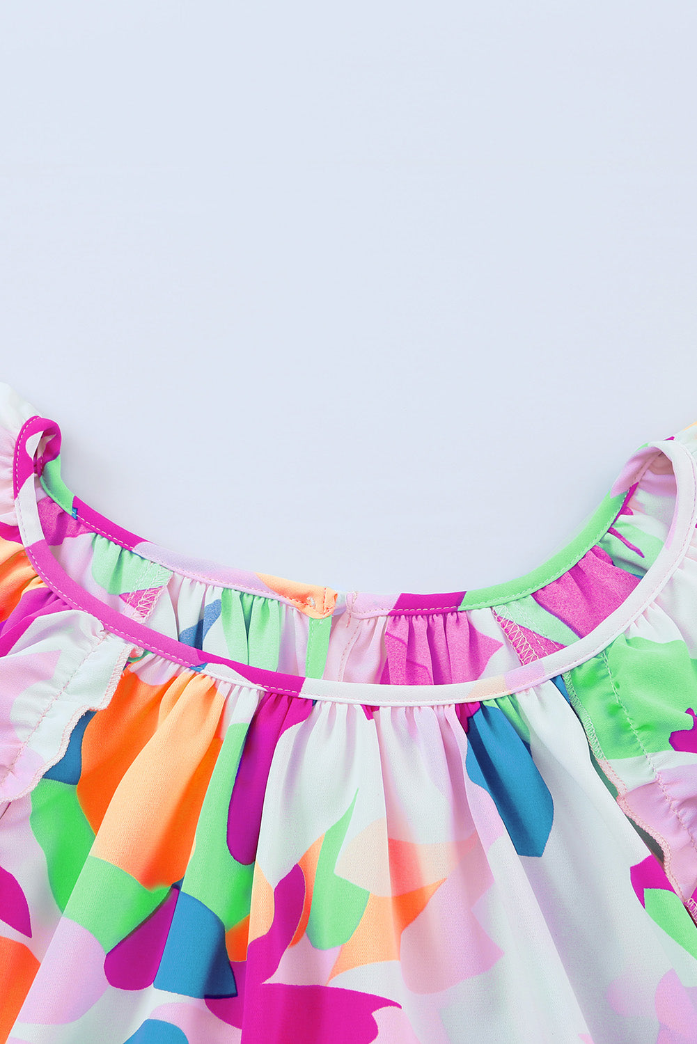 Blue Abstract Pattern Ruffle Short Sleeves Blouse