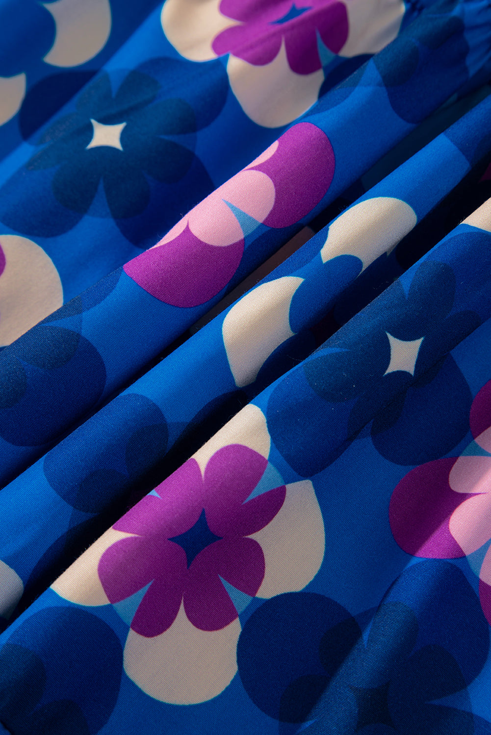 Blue Floral Peasant Sleeve Tiered Ruffle Midi Dress