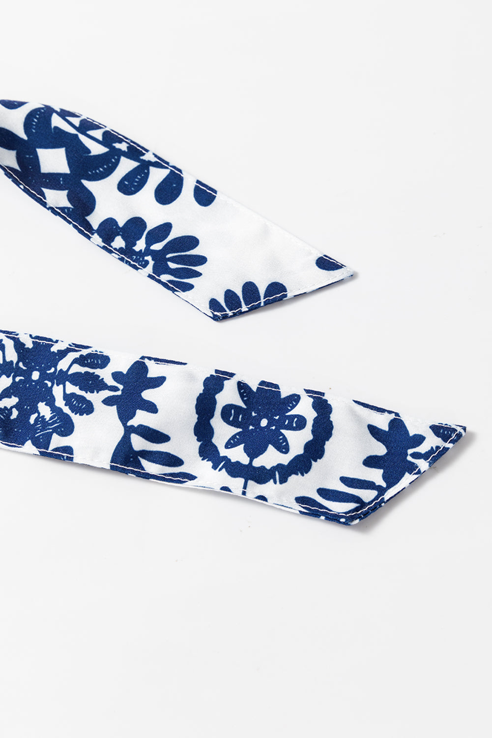 Blue Floral Print V Neck Wrapped Knot Long Sleeve Dress